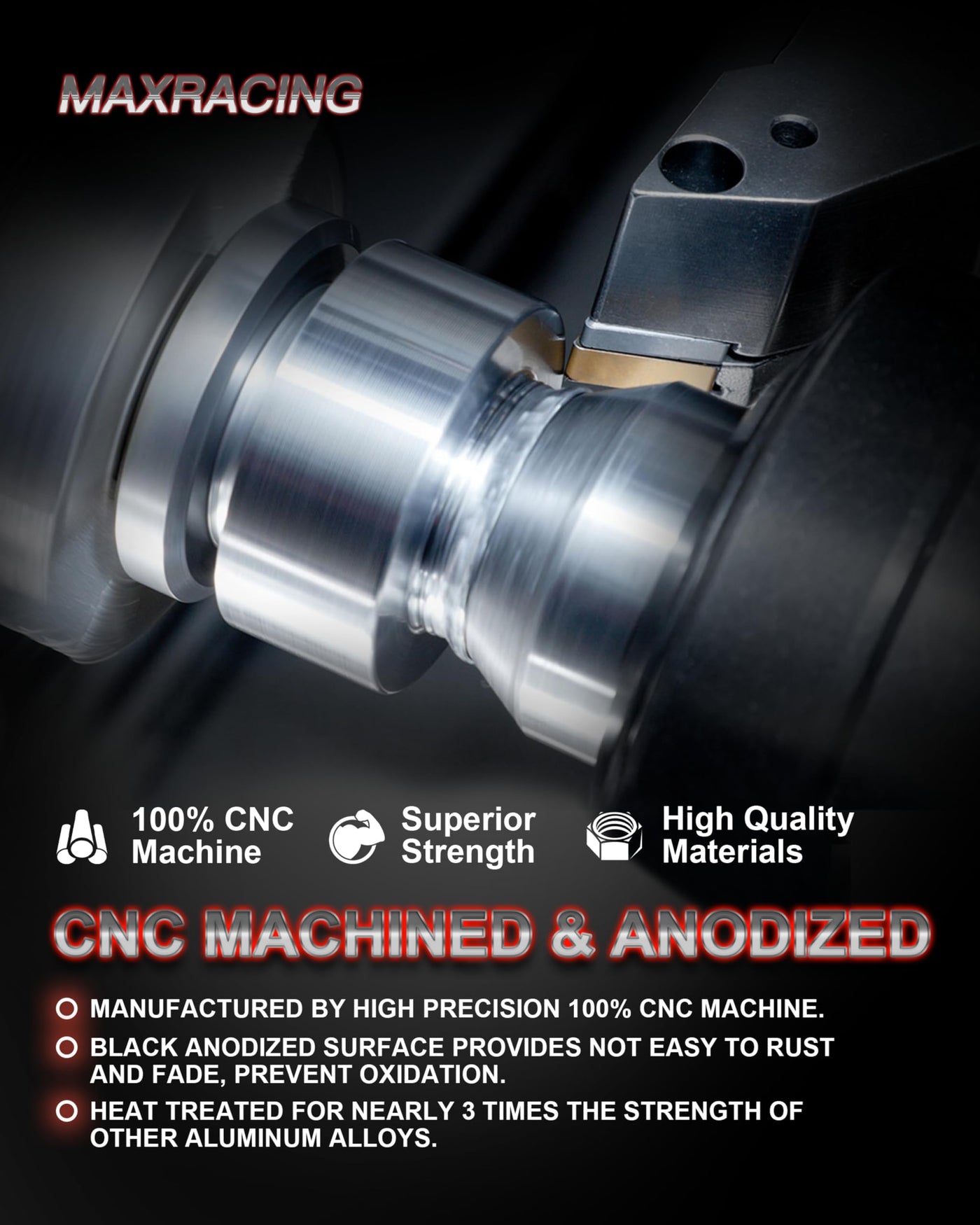 Q: What materials are used in the construction of the leveling spacers?A: The leveling spacers are CNC machined from high-quality billet aluminum and are powder-coated black to match your factory suspension. This ensures excellent strength, corrosion resistance, and durability.