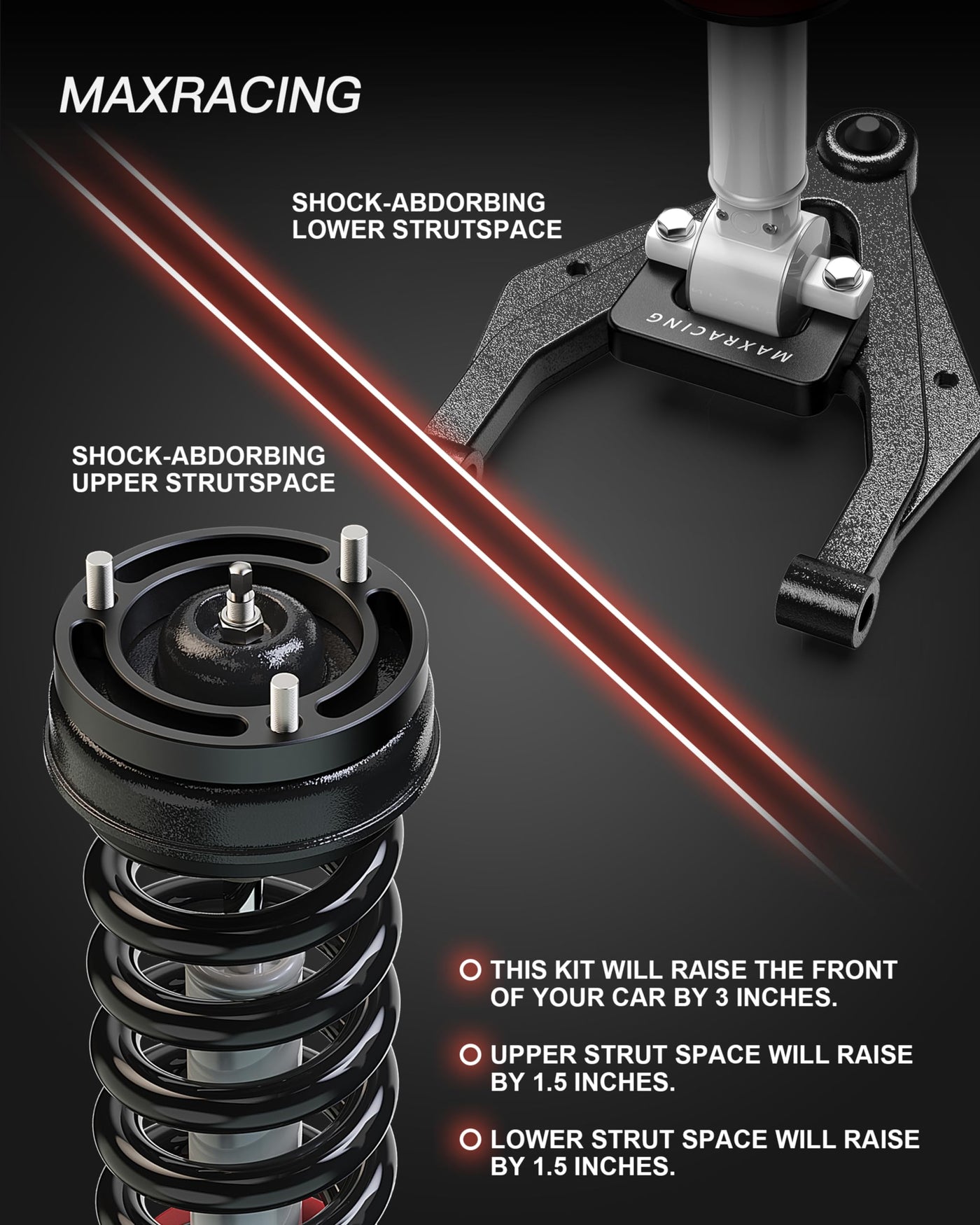 Maxracing 3'' Front Leveling Kit Upper+Lower Strut Lift Spacers Compatible With 2007-2024 Chevy Silverado Avalanche Suburban Tah
