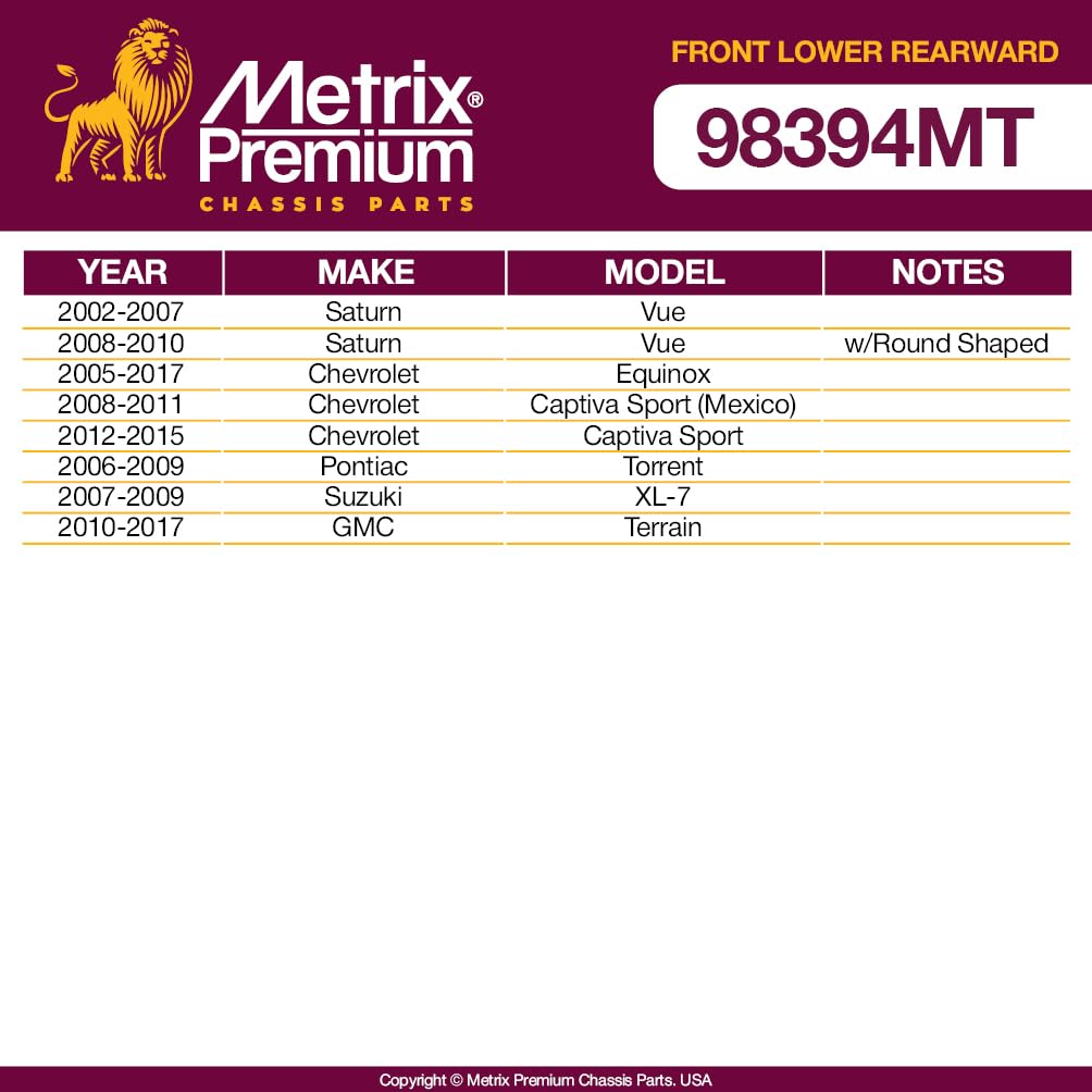 Metrix Premium Chassis Parts - 2 Pc Front Lower Rearward Control Arm Bushing Kit Fits 02-10 Saturn Vue, 05-17 Chevrolet Equinox, 12-15 Captiva Sport, 06-09 Pontiac Torrent, K200784, Made In Europe