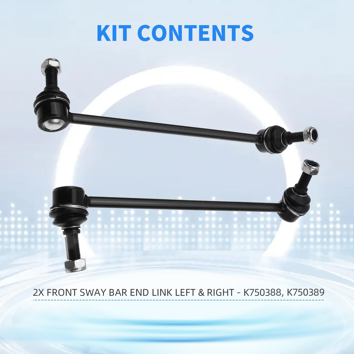 Sway Bar Link KIT Contents:< br>< br> 2X Front Stabilizer / Sway Bar End Link-LH (Driver) RH (Passenger) - K750388, K750389< br> Sway Bar End Links Suitable Vehicle Type:< br>< br> Sway Bar Link Front For 2010 2011 2012 2013 2014 2015 2016 2017 2018 Ford Flex< br> Sway Bar Link Front For 2013 2014 2015 2016 2017 2018 Ford Police Interceptor Sedan< br> Sway Bar Link Front For 2014 2015 2016 2017 2018 Ford Special Service Police Sedan< br> Sway Bar Link Front For 2010 2011 2012 2013 2014 2015 2016 2017 2018 Ford Taurus< br> Sway Bar Link Front For 2010 2011 2012 2013 2014 2015 2016 Lincoln MKS< br> Sway Bar Link Front For 2010 2011 2012 2013 2014 2015 2016 2017 2018 Lincoln MKT