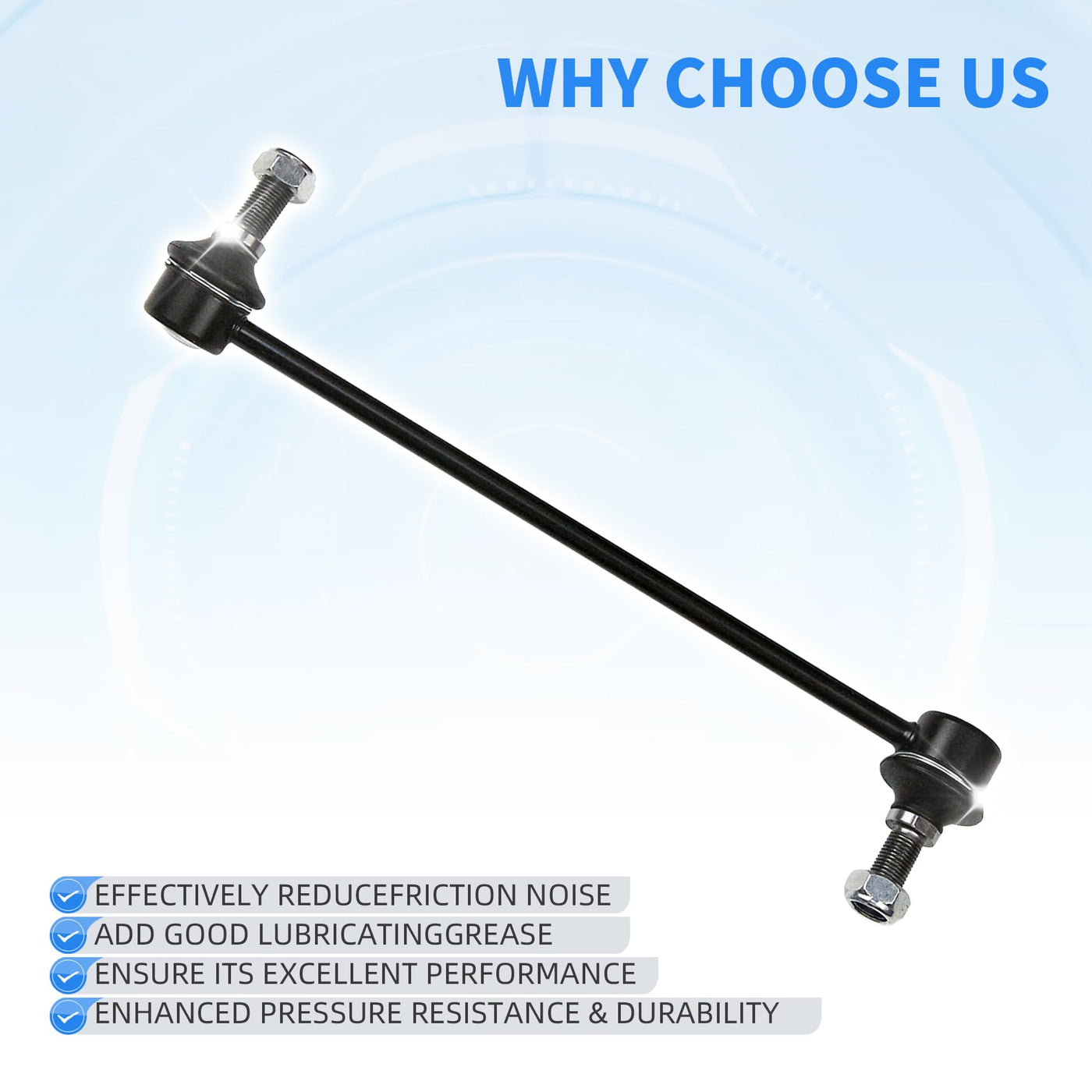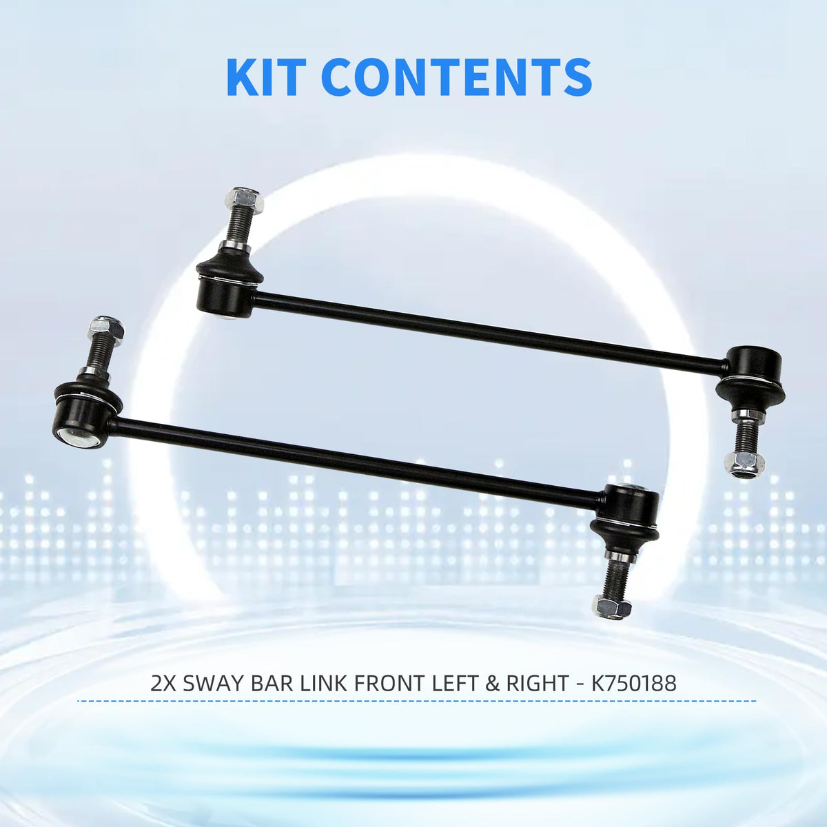 Sway Bar Link Kit Contents:1X Stabilizer Sway Bar End Link Front Left (Driver Side) - K7501881X Stabilizer Sway Bar End Link Front Right (Passenger Side) - K750189Sway Bar End Links Suitable Vehicle Type:For 2012 2013 2014 2015 Chevrolet Captiva Sport Suspension Front Sway Bar Link KitFor 2010 2011 2012 2013 2014 2015 2016 2017 Chevrolet Equinox Suspension Front Sway Bar Link KitFor 2008-2009 Chevrolet Equinox V6 3.6L Suspension Front Sway Bar Link KitFor 2010 2011 2012 2013 2014 2015 2016 2017 GMC Terrain Suspension Front Sway Bar Link KitFor 2008-2009 Pontiac Torrent V6 3.6L Suspension Front Sway Bar Link KitFor 2008 2009 2010 Saturn Vue Suspension Front Sway Bar Link KitFor 2007 2008 2009 Suzuki XL-7 Suspension Front Sway Bar Link Kit