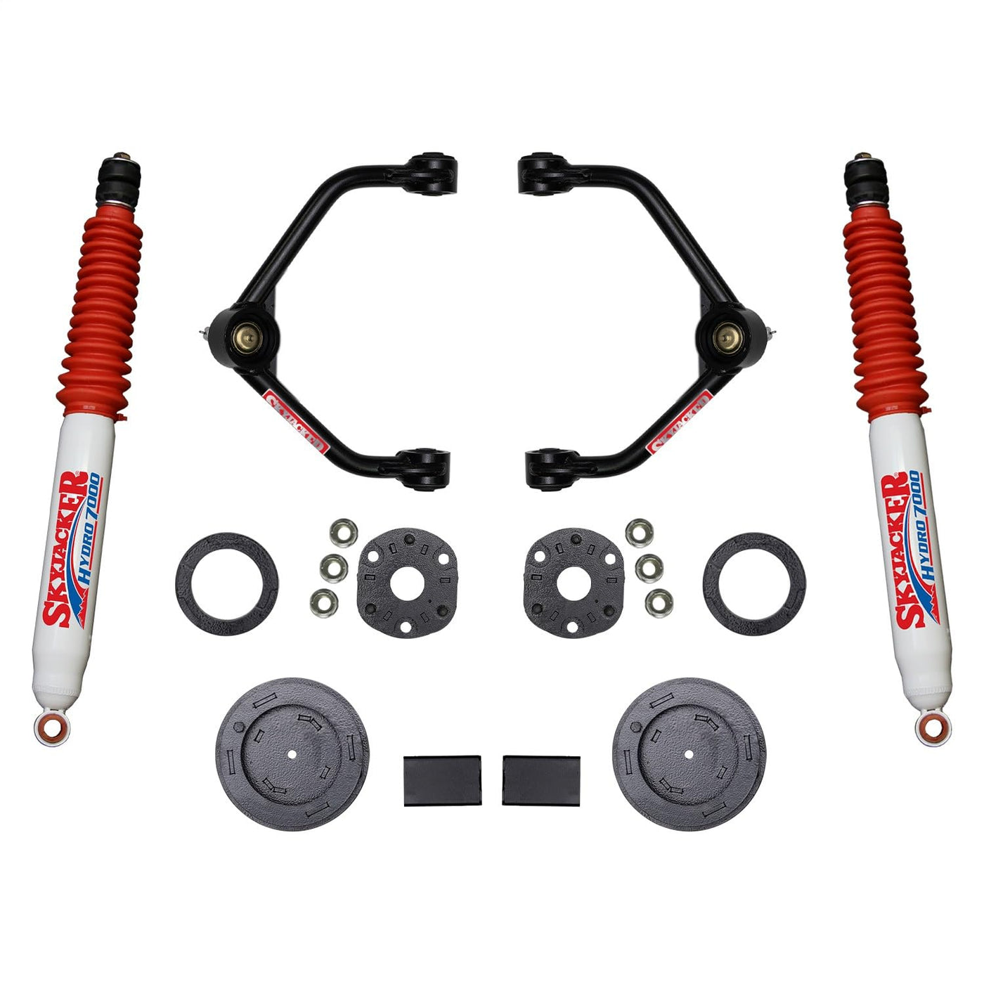 Q: What are the key features of the Skyjacker suspension lift kit?A: The Skyjacker suspension lift kit is precision manufactured for a perfect fit, made from quality materials, and adheres to the manufacturer's specifications for safe usage and installation. It includes lift kits and is designed to enhance your vehicle's off-road capabilities.
