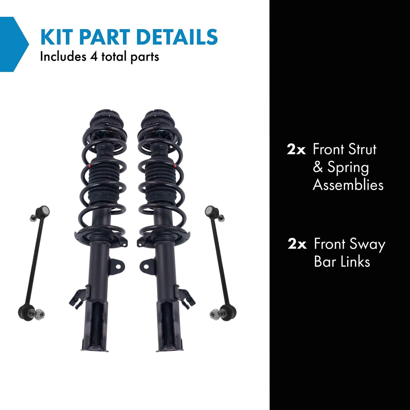 TRQ Front Suspension Kit Complete Strut & Coil Spring Assembly Sway Bar Stabilizer Link Compatible with 2012-2019 Nissan Versa 2