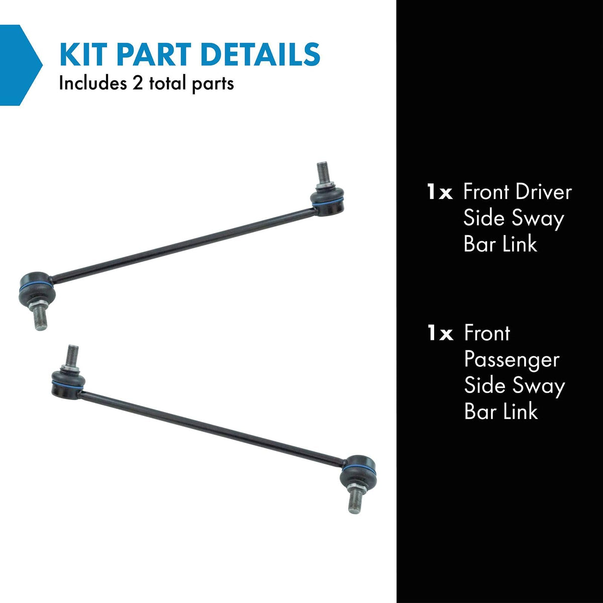 2 Piece Sway Bar Link Setkit Includes(1) Front Driver Side Sway Bar Link(1) Front Passenger Side Sway Bar Linkfitmentcompatible With: 2011-14 Hyundai Sonata Gls Without Sport Suspension Front Driver & Passenger Sidecompatible With: 2011-14 Hyundai Sonata Limited L4 2.4L Without Sport Suspension Front Driver & Passenger Sideproduct Attributesquantity: 2 Piecereference Numbersbeck/Arnley: 101-7169, 101-7170Diy Solutions: Sus04097, Sus07122, Sus07123Hyundai: 548303R000As, 548403R000Dsmevotech: Ms90870, Ms90871Moog Chassis Products: K750436, K750437