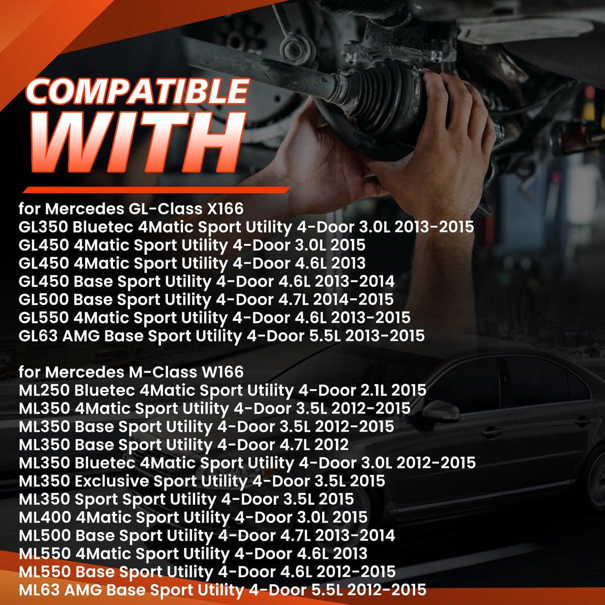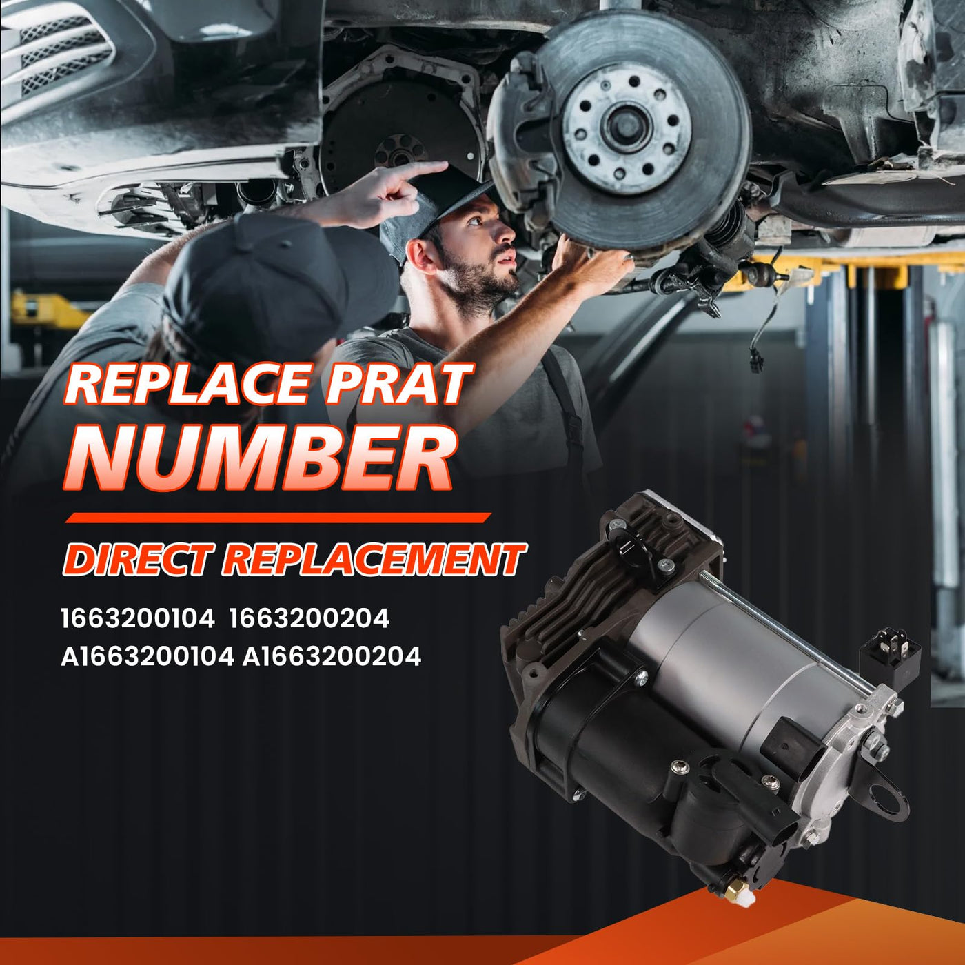 YDMON Air Suspension Compressor Pump, Compatible with Mercedes GL-Class X166 GL 350 GL450 GL500 GL550 M-Class W166 ML250 ML 350 2013 2014 2015, Automotive Replace Part 1663200104 1663200204Comfort and stability The air shock absorber compressor pump provides the vehicle with better suspension system support, which can effectively absorb shocks and absorb bumps and impacts on the road.Reliability and durability Our air suspension compressor pump uses high-quality materials and advanced manufacturing processes to ensure its reliability and durability.Height adjustable This product can achieve precise control of the vehicle suspension height by adjusting the air pressure in the air bag.Part Number: 1663200104 1663200204 A1663200104 A1663200204Compatible with Models:For Mercedes GL-Class X166 GL350 Bluetec 4Matic Sport Utility 4-Door 3.0L 2013-2015 GL450 4Matic Sport Utility 4-Door 3.0L 2015 GL450 4Matic Sport Utility 4-Door 4.6L 2013 GL450 Base Sport Utility 4-Door 4.6L 2013-2014For Mercedes M-Class W166 ML250 Bluetec 4Matic Sport Utility 4-Door 2.1L 2015 ML350 4Matic Sport Utility 4-Door 3.5L 2012-2015 ML350 Base Sport Utility 4-Door 3.5L 2012-2015 ML350 Base Sport Utility 4-Door 4.7L 2012Product Condition: Brand New& High QuailtyPackage Include: 1* Air Suspension Compressor PumpNote: We are committed to providing professional consultation and support to ensure you select the most suitable parts. Our dedicated team is ready to assist you in resolving any issues. Please read our descriptions carefully to ensure that the model matches your requirements, preventing any incorrect orders that may waste your valuable time.