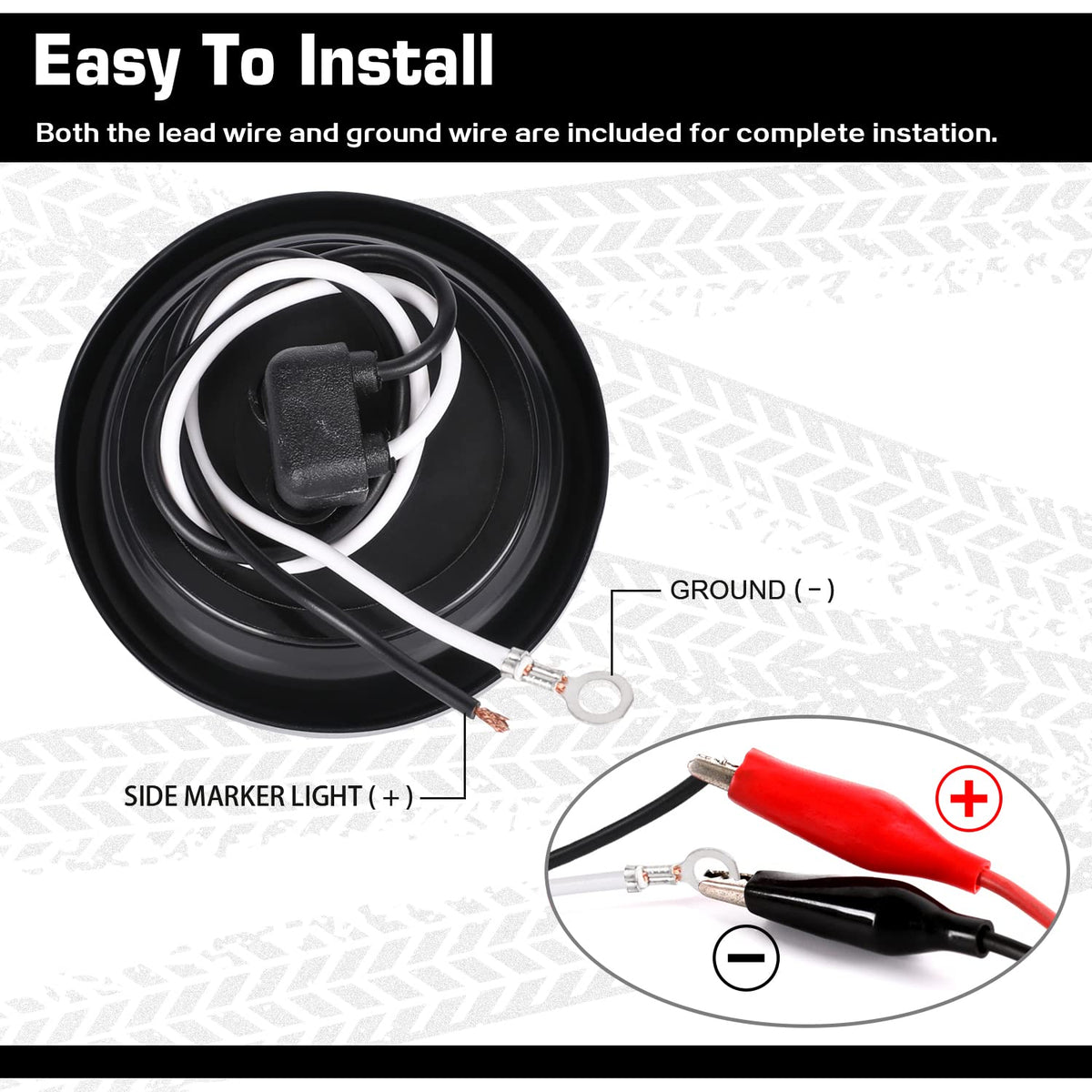 Q: How easy is it to install the LINKITOM Side Marker Lights?A: Installation is straightforward. Each 2" round side marker light includes a standard 2-prong wire plug, with clear instructions. You will need to drill a hole approximately 2.25" to 2.3" in diameter for proper installation.