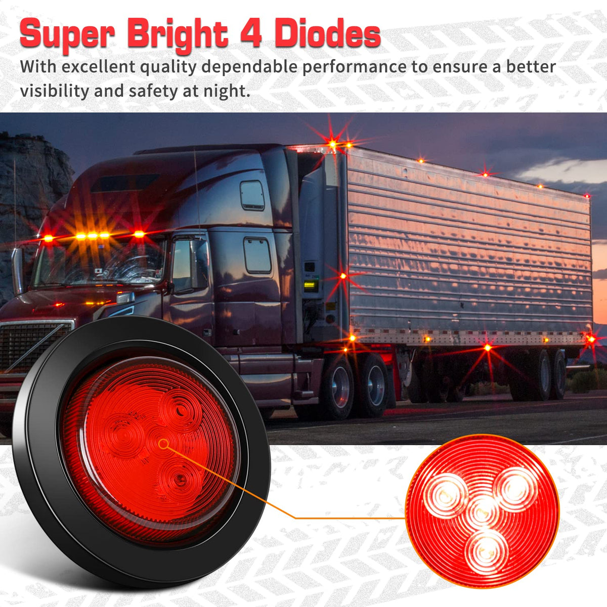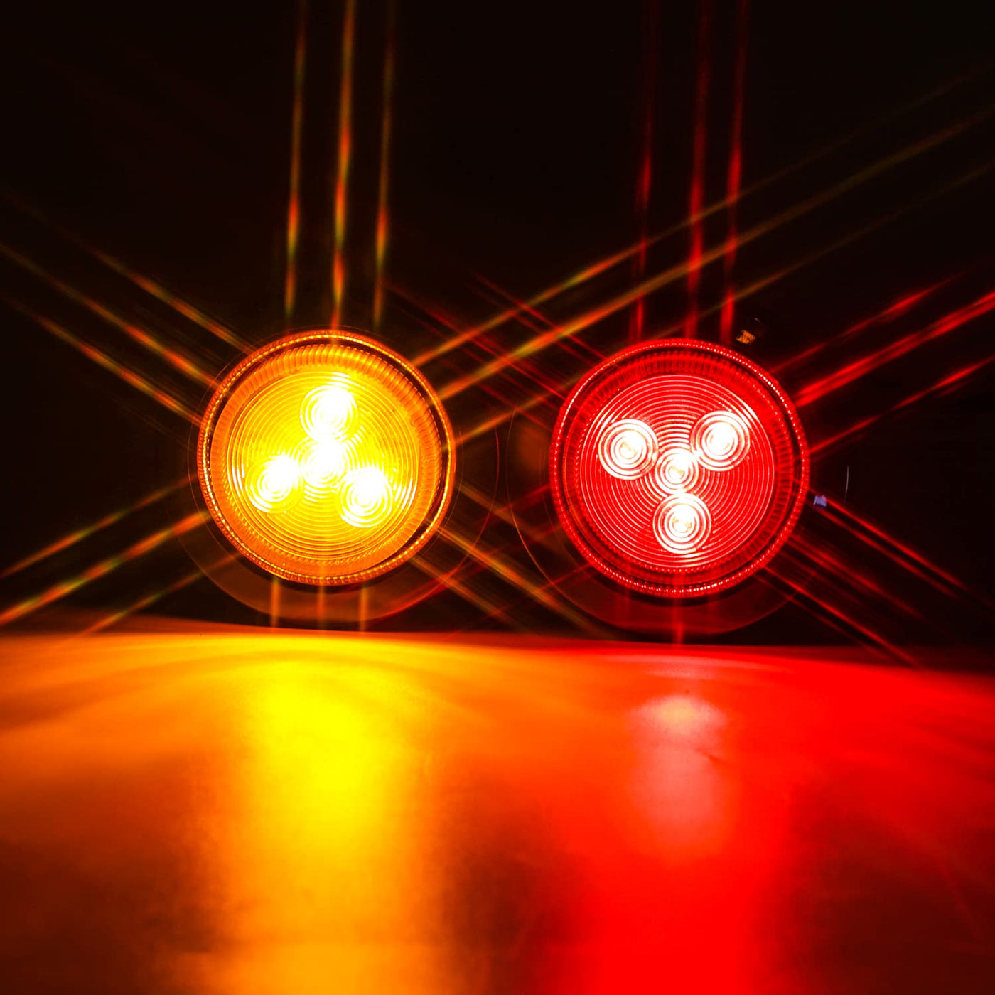 10 Pack (5 Amber + 5 Red) 2'' Round Led Side Marker Light, Super Bright 12-24V Grommet Flush Mount 4 Led Clearance Marker Lights