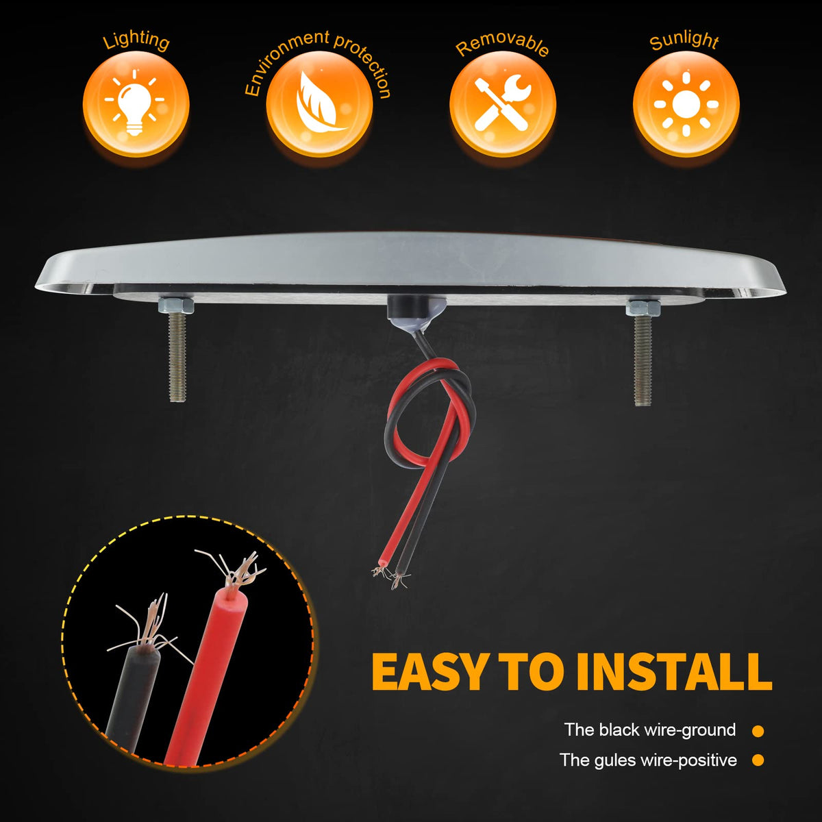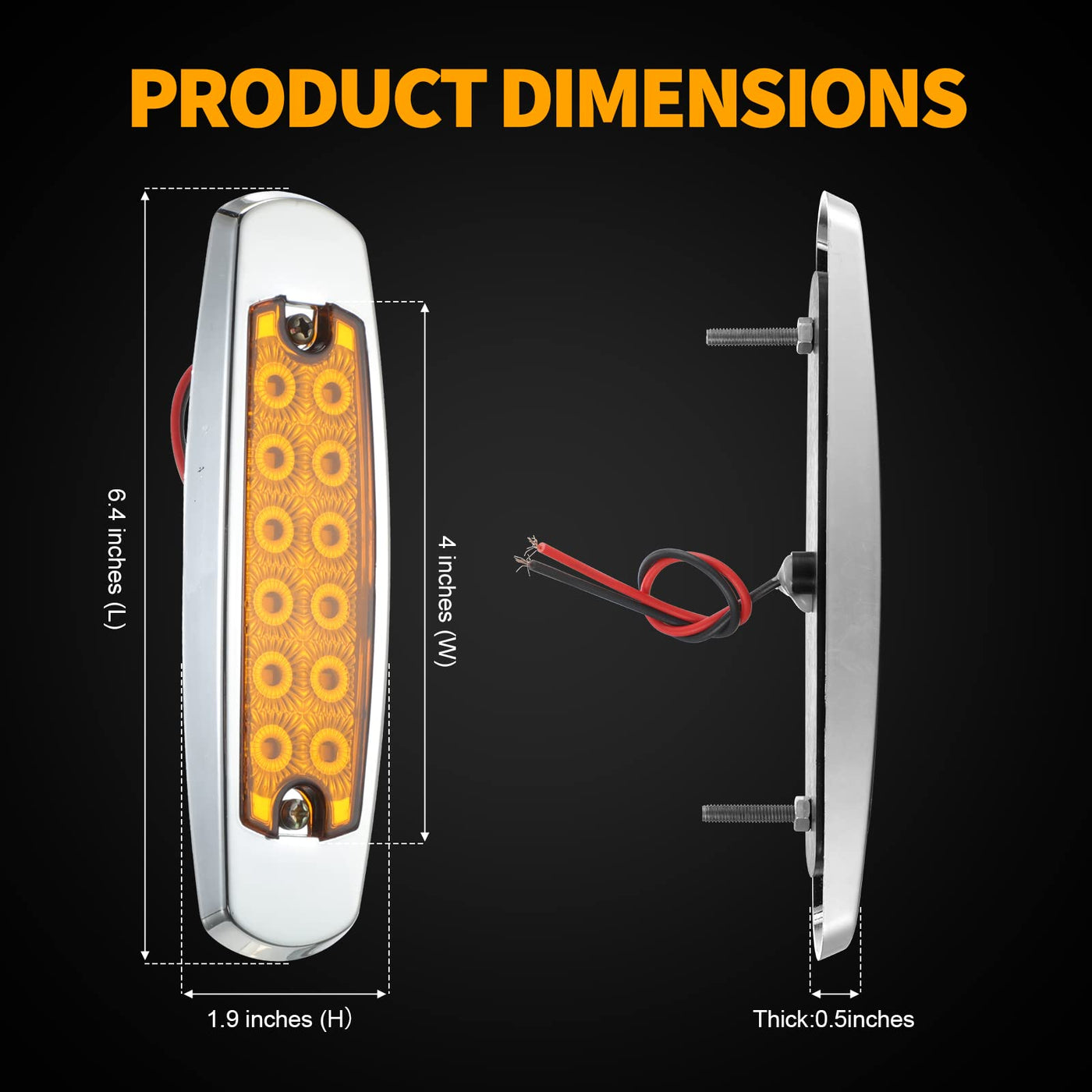 Features:Protect Your Driving Safety:The Led Marker Lights Are A Good Life Helper, Featuring Efficient Warning Function, Low Energy Consumption And Energy Saving, Quality 12 Led Each Light Make The Light Brighter And Last Much Longer Than Regular Incandescent Bulbs, Which Provides Maximum Visibility And Safety, It Can Be Adopted In The Rain Or Harsh Environments.Powerful Functions:Amber Trailer Lights Side Marker Function As Side Marker Light, Indicator Light, Tail Light, Decoration Light, Clearance Lights, Running Lights, Front Parking Lights, Indicator Lights, Identification Lights, Boat Interior Lights, Camper Light, Decorate Light, Under Dash Lights, Walk Way Lights, Etc. These Amber Led Lights Are Universal For 12V Dc Vehicles, Especially The Heavy Trucks.Specifications:Material: Abs And Ipx6Color: Ambersize: Approx. 6.4 Inches X 1.9 Inchespackage Include:30 X Led Marker Lightswarm Notes:Manual Measurement, Please Allow Slight Errors On Size.The Color May Exist Slight Difference Due To Different Screen Displays.