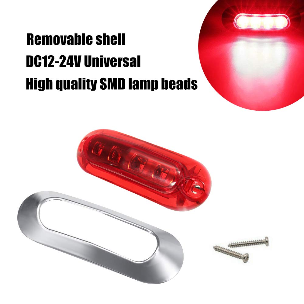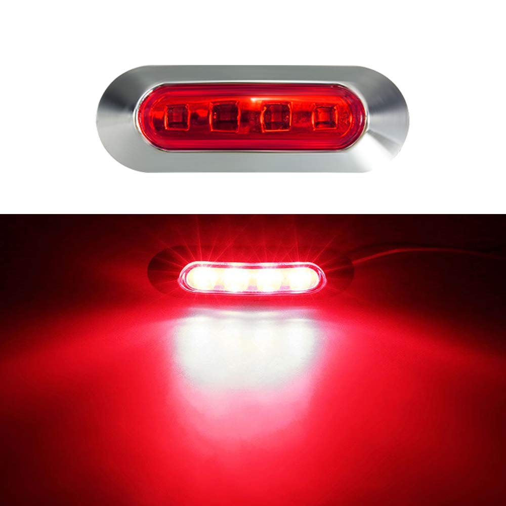 Alfu 10Pcs Red Dc12V-24V 4 Led Side Marker Indicator Lights Lamp Front Rear Tail Clearance Lamp Interior Lights With Chrome Beze