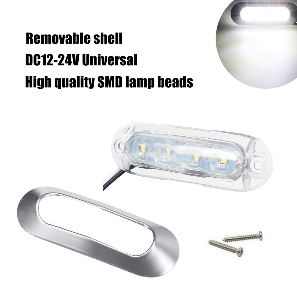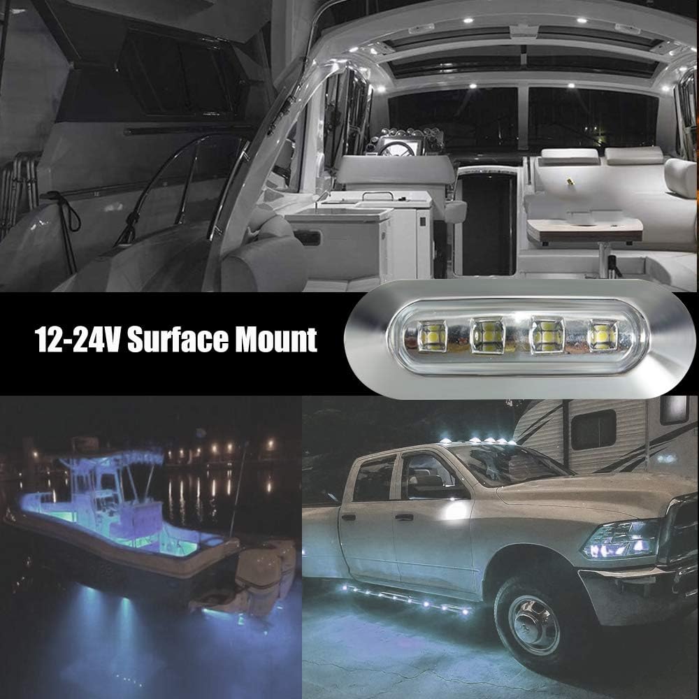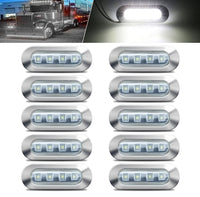 Alfu 10Pcs White Dc12V-24V 4 Led Side Marker Indicator Lights Lamp Front Rear Tail Clearance Lamp Interior Lights With Chrome Be