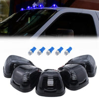 Glofe 5X Black Smoke Lens Cab Roof Marker Running Lamps W/Blue Led Lights Compatible With Ford F150 F250 F350 F450 F550 F650 F750 E150 E250 E350 E450 1999-2016 Super Duty Pickup Trucks