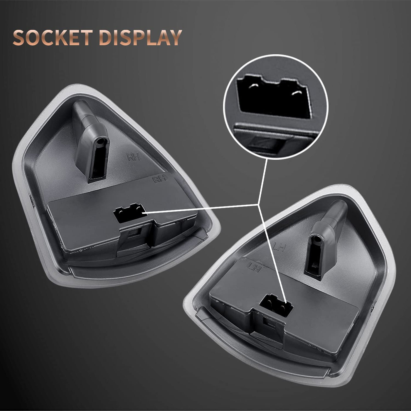 Q: How bright are these LED turn signal lights compared to original ones?A: The upgraded side mirror turn signal lamps feature built-in 4 higher brightness LED chips, making them 200% brighter than the original turn signal lamps.