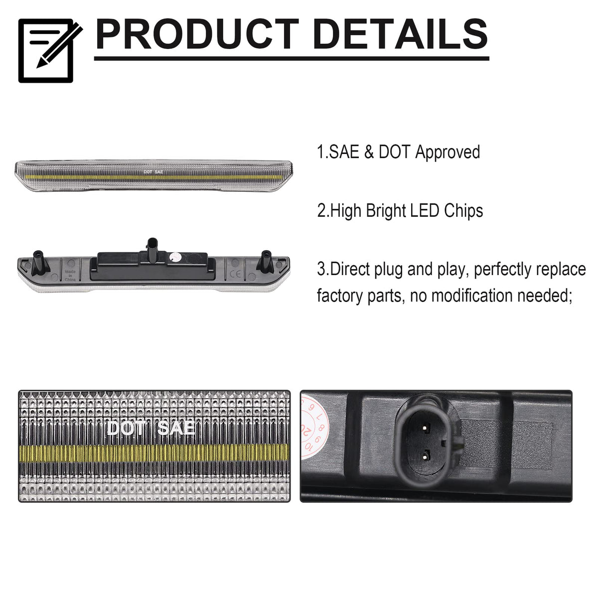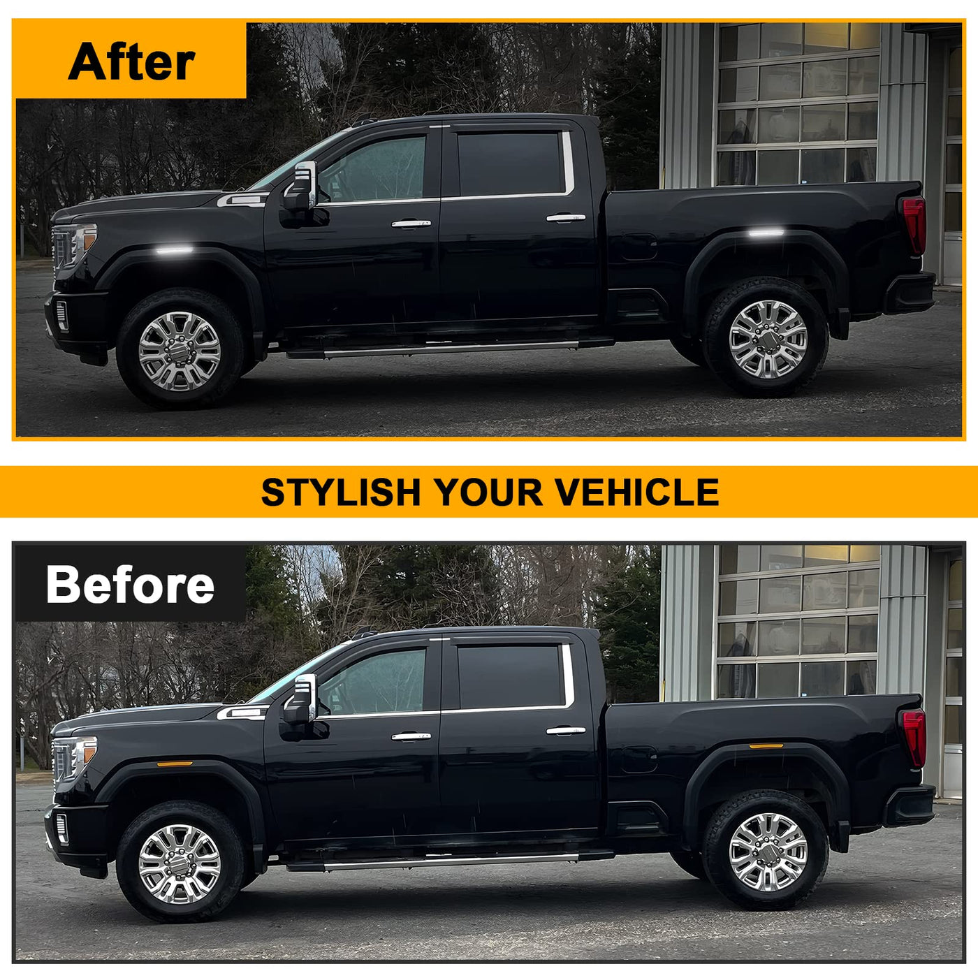 Product Description &Nbsp; Features: 1.Nomodification - Direct Fit/ Installation. 2.Clear Lens, Sea &Amp; Dot Certificated, Ip67 Waterproof. 3.Itis Made Of Anti-Scratch Pc Plastic, Which Prevents The Lens From Being Fadedwith Long-Time Exposure. 4.5 Times Brighter Than Oe Lamp, Enhances Visibility And Safety. 5.Different Appearance Design From Others, Give Your Car More Cool Styling Andappearance. 6.Frontside Marker Lights Color:White; Rear Side Marker Lights Color: White; &Nbsp; Replacement For: Fitfor Sierra 2500Hd 3500Hd 2020 2021 2022 &Nbsp; Replacement Oem Part Number: 84806032&Nbsp; 84185031 &Nbsp; Package: 2Pcs*Front Led Side Marker Lamp(White) 2Pcs*Rear Led Side Marker Lamp (White) &Nbsp; Please Notes: Weare Highly Recommended To Use Hand Screw Tool For The Installation. Electronictool Is Easily Screwing Too Tight And Case Cracked. Please Check The Product For Accuracy Of Fit Your Vehicle Or Not. Led Side Lights Are Aftermarket Productssold In Our Store, Not Sold By Describing The Brands Of Vehicles Listed.