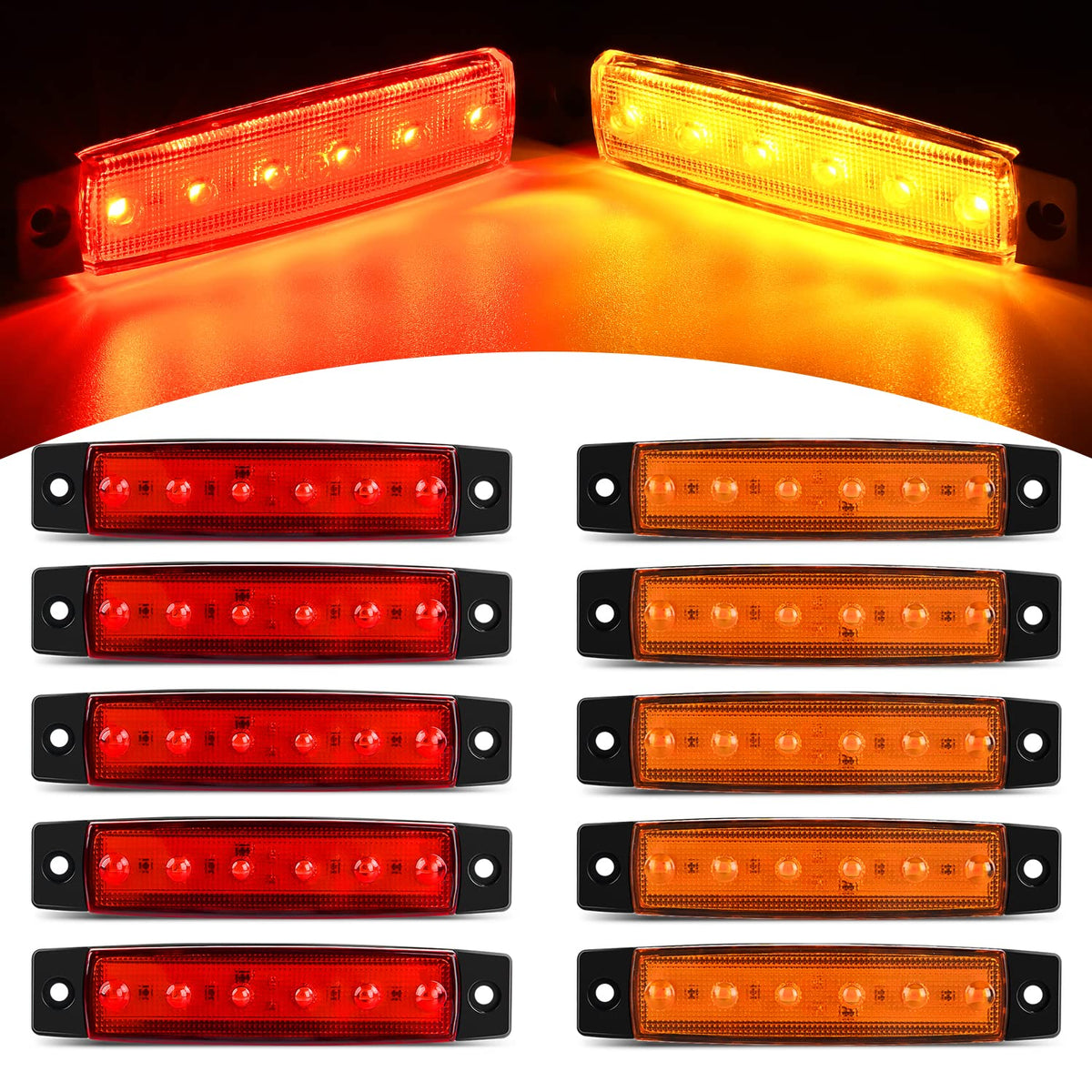 Nilight - Tl-13 10 Pcs Amber Red 3.8” 6 Led Amber Side Led Marker Clearance Indicator Light Rear Side Marker Light For Truck Trailer Rv Cab Boat Bus Lorry Led, 2 Years Warranty.