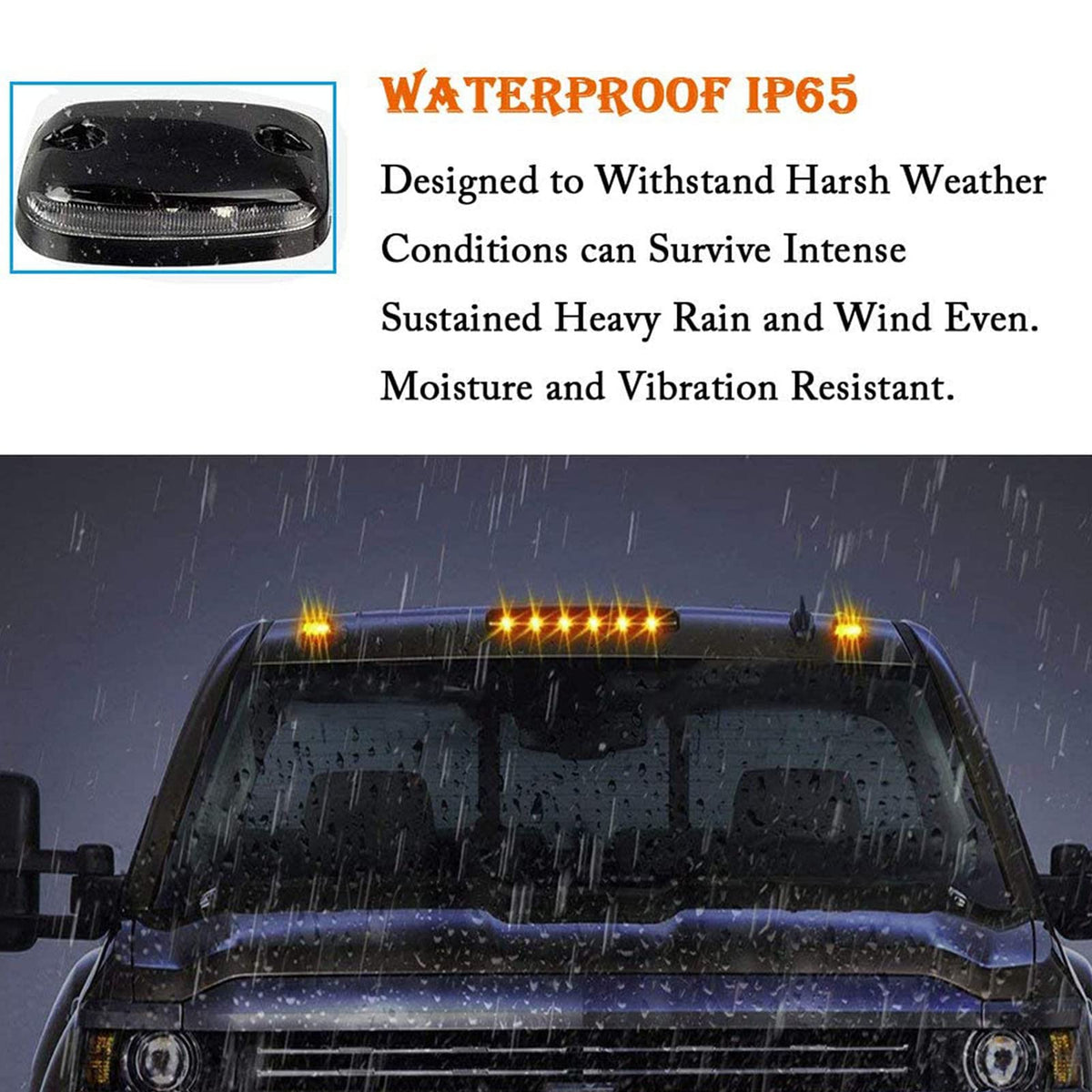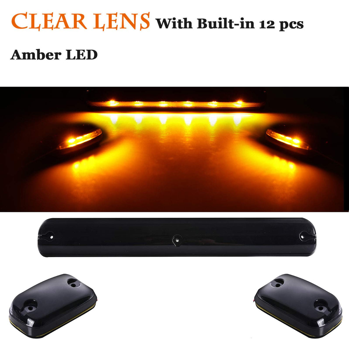 Npauto 3Pcs Silverado Cab Lights Amber 12 Led Clear Lens Cab Marker Roof Top Clearance Lights Running Light Assembly Replacement