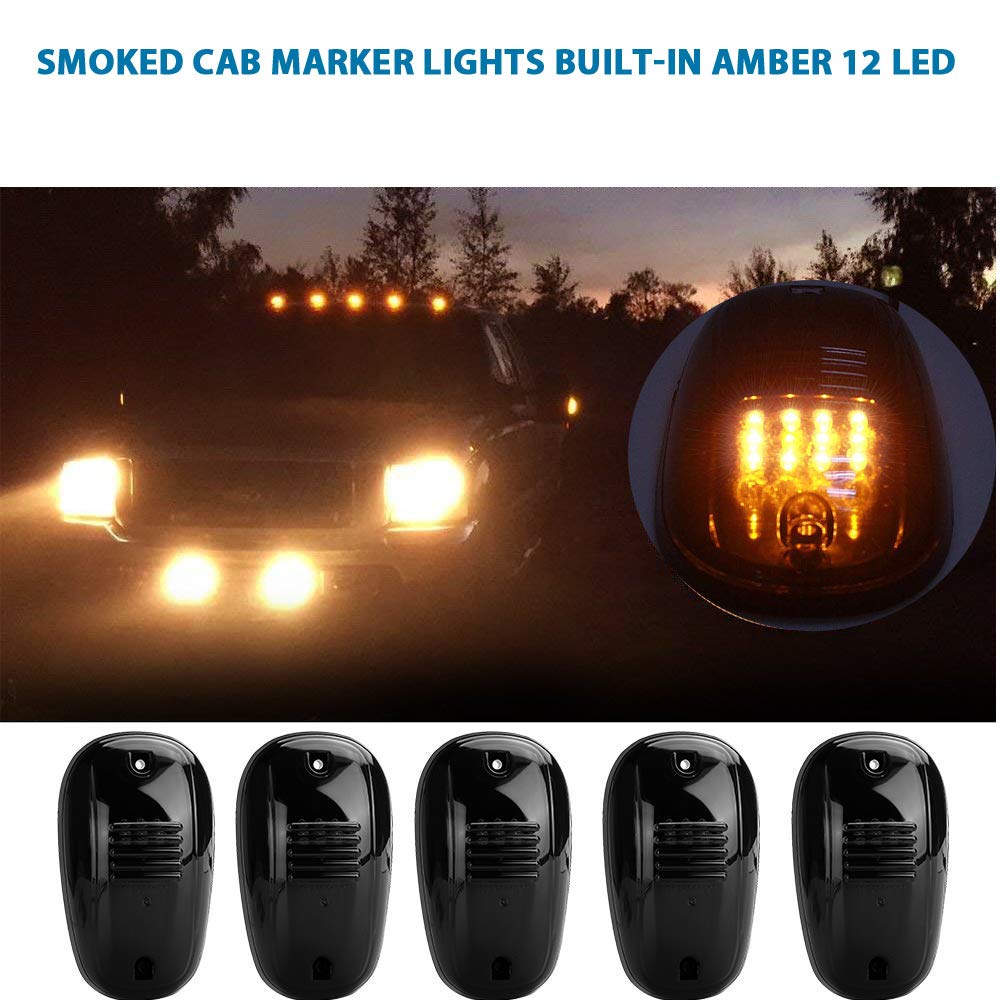 Npauto 5Pcs 12 Led Smoked Amber Cab Lights Replacement For 2003-2018 Dodge Ram 1500 2500 3500 4500 5500 Roof Top Clearance Light