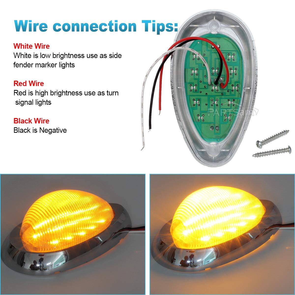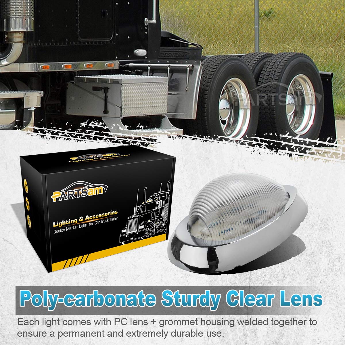 Partsam 2X Clear Lens 5-7/8 Amber 15Led Side Marker Lamp Turn Signal Teardrop Light W Chrome Bezel Replacement For Trucks Freightliner Columbia Coronado Classic Century