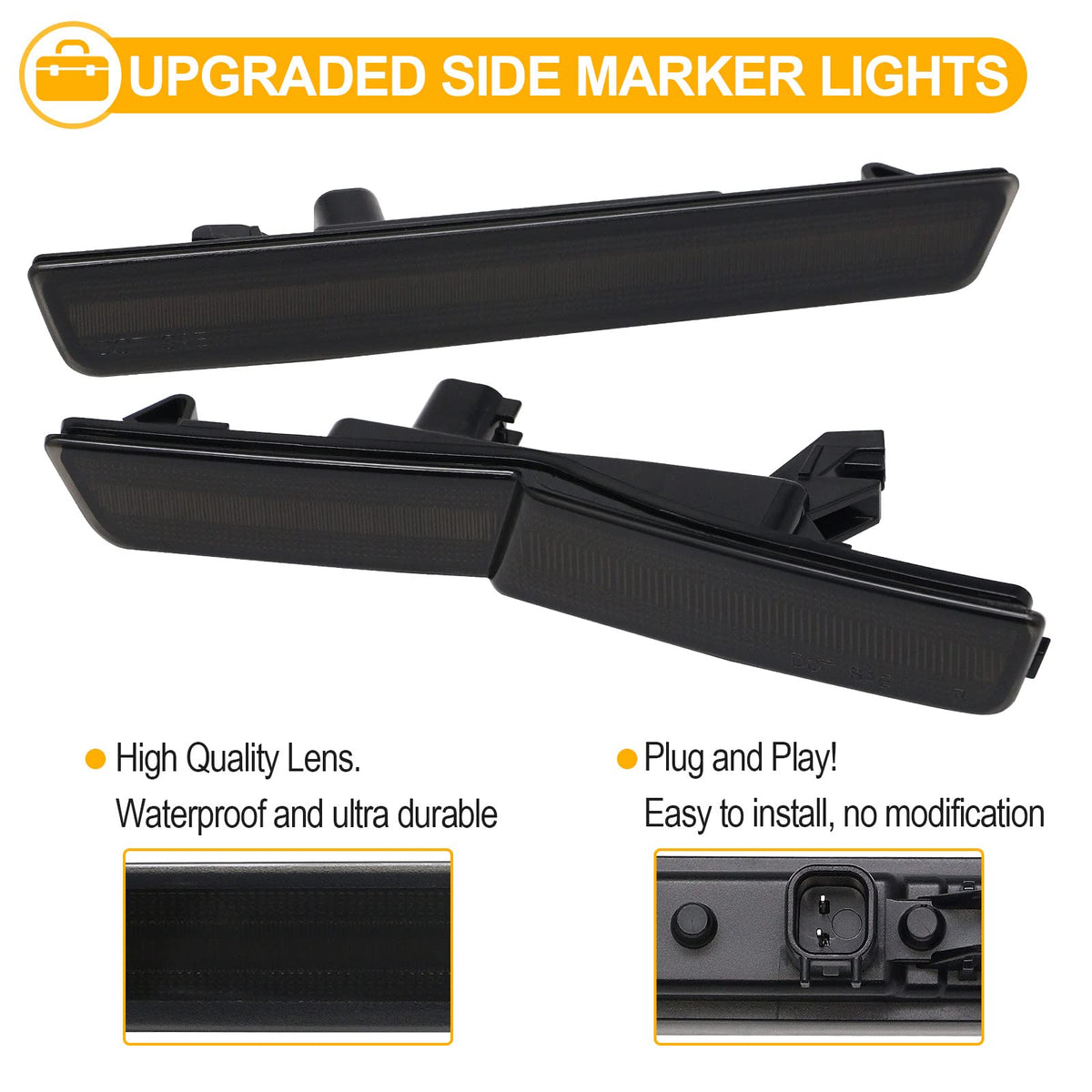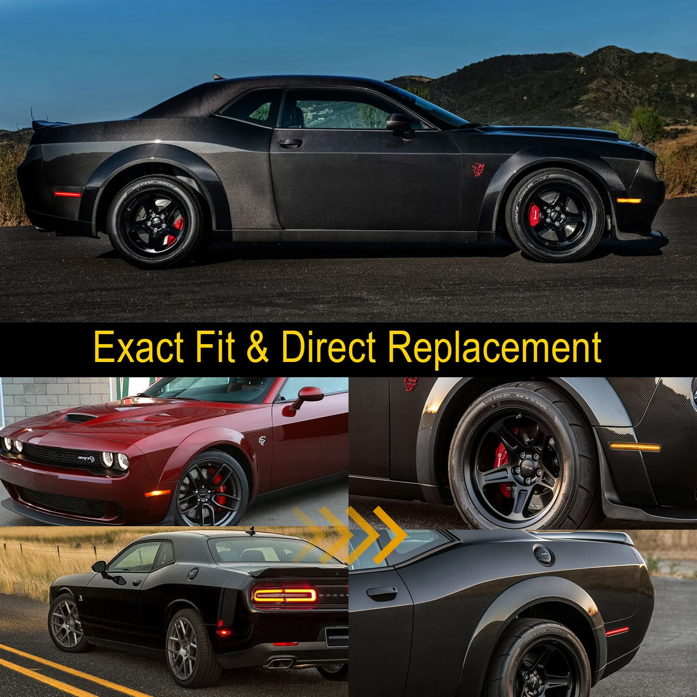 R&F Auto 4 Pcs Led Side Marker Lights Replacement For 2018-2023 Challenger Srt Hellcat, R/T Scat Pack Widebody For Redeye Super Stock Jailbreak Demon Sidemarker Turn Signal Lamps Smoked Lens