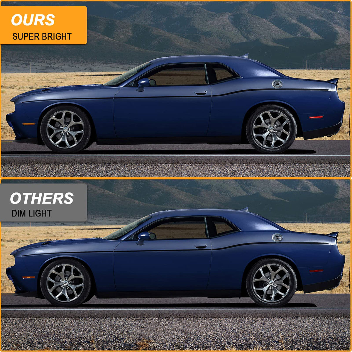 4Pcs Led Amber Red Side Marker Lights Compatible With Challenger 2015-2023 Front Rear Fender Side Marker Lamp Powered By 180Pcs Led Chips, Smoked Lens, Replace Oem#: 68195788Ab, 68195797Ab