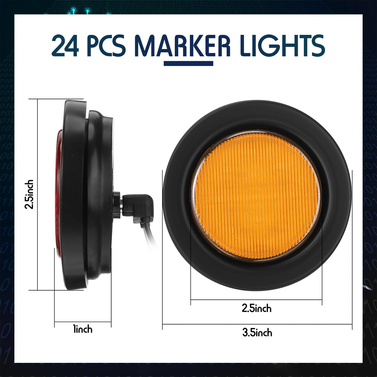 Q: What types of vehicles are compatible with the Retisee 24 Pcs Round Clearance Lights?A: The Retisee 24 Pcs Round Clearance Lights are compatible with a variety of 12V DC vehicles, including trucks, trailers, RVs, buses, vans, and even ATVs. They can be used as side marker lights or clearance lights, enhancing visibility and safety during night driving.