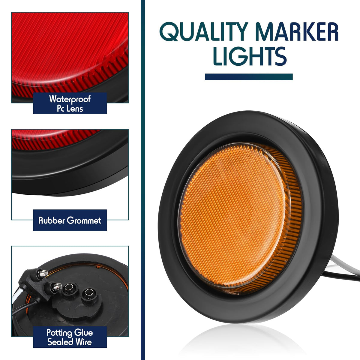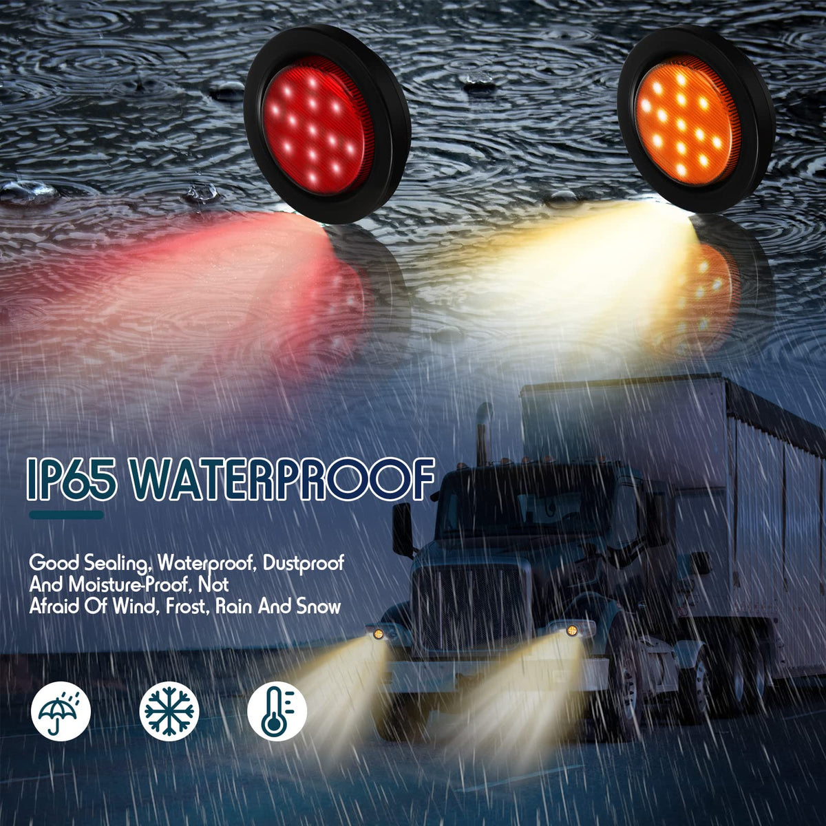 Q: Are the Retisee clearance lights waterproof and durable?A: Yes, these LED marker lights are made from quality plastic material that is shockproof, waterproof, and resistant to various weather conditions, including wind, frost, rain, and snow. This durability ensures they can withstand long-term use in outdoor environments.