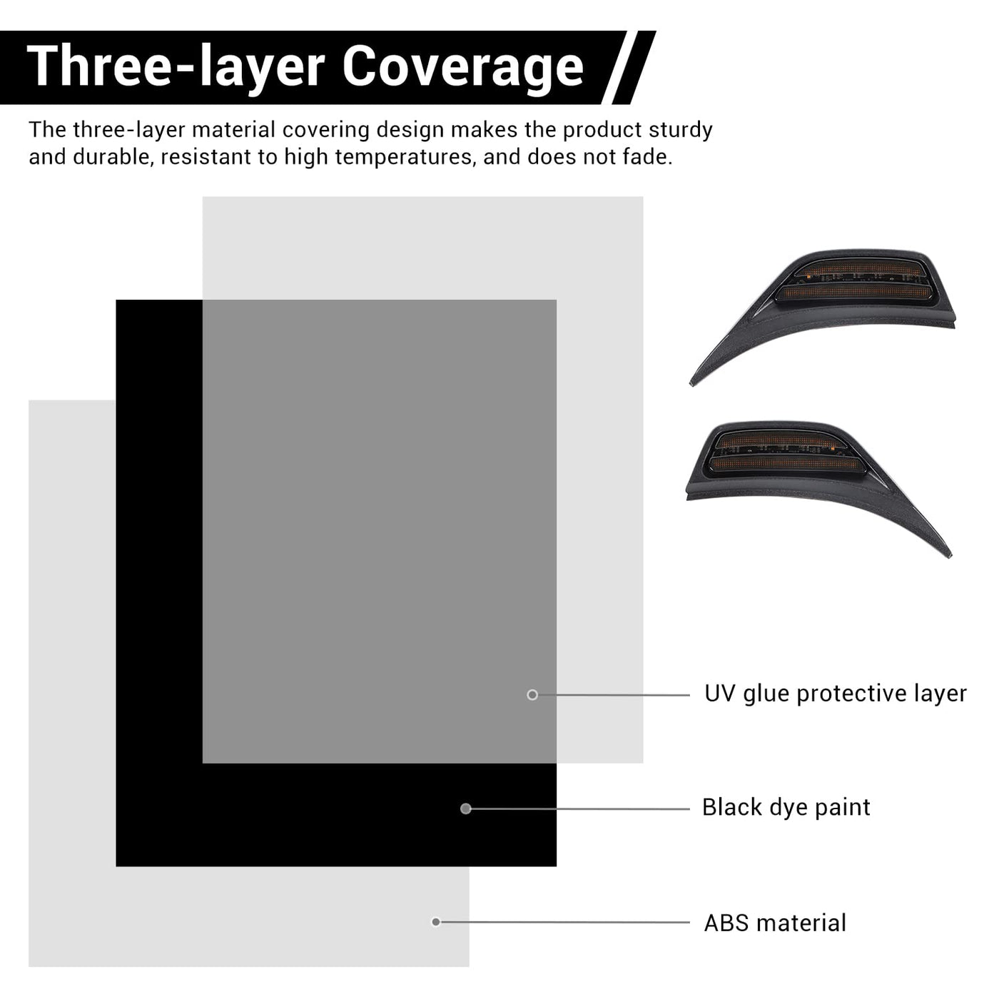 Q: Are the RT-TCZ lights weatherproof?A: Yes, the RT-TCZ Fender Side Vent Turn Signal Marker Lights feature a triple-layered coating that offers protection against debris and varying weather conditions, ensuring reliable performance.