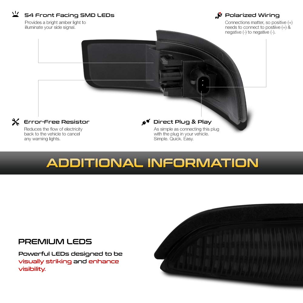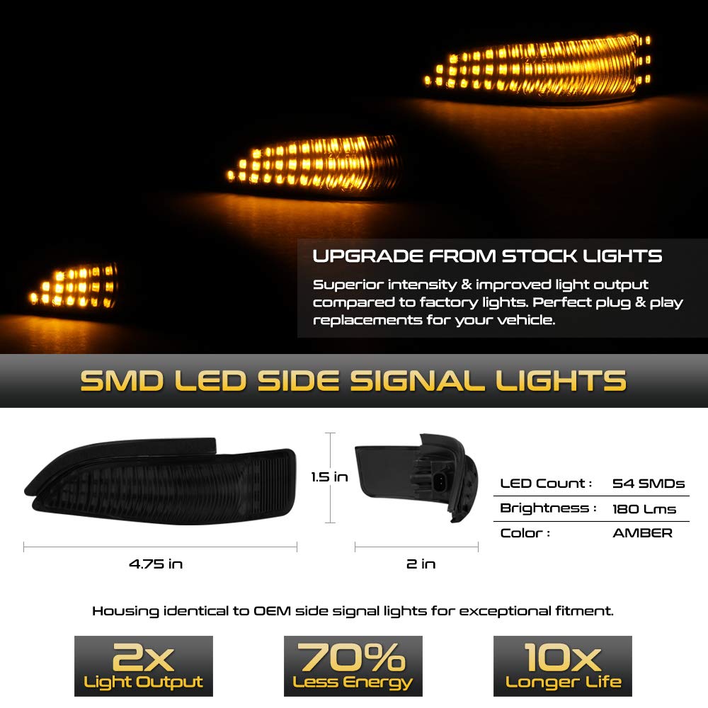 [Sequential Turn Signal] Vipmotoz Smoke Lens Full Led Amber Side Marker Light Lamp Assembly Replacement Pair For Toyota Corolla