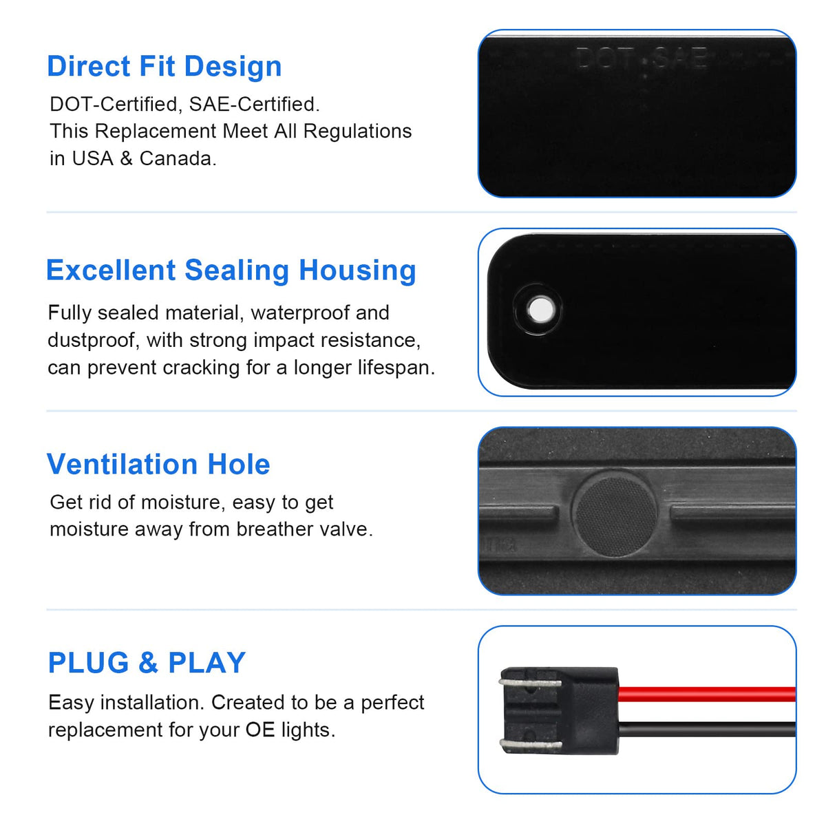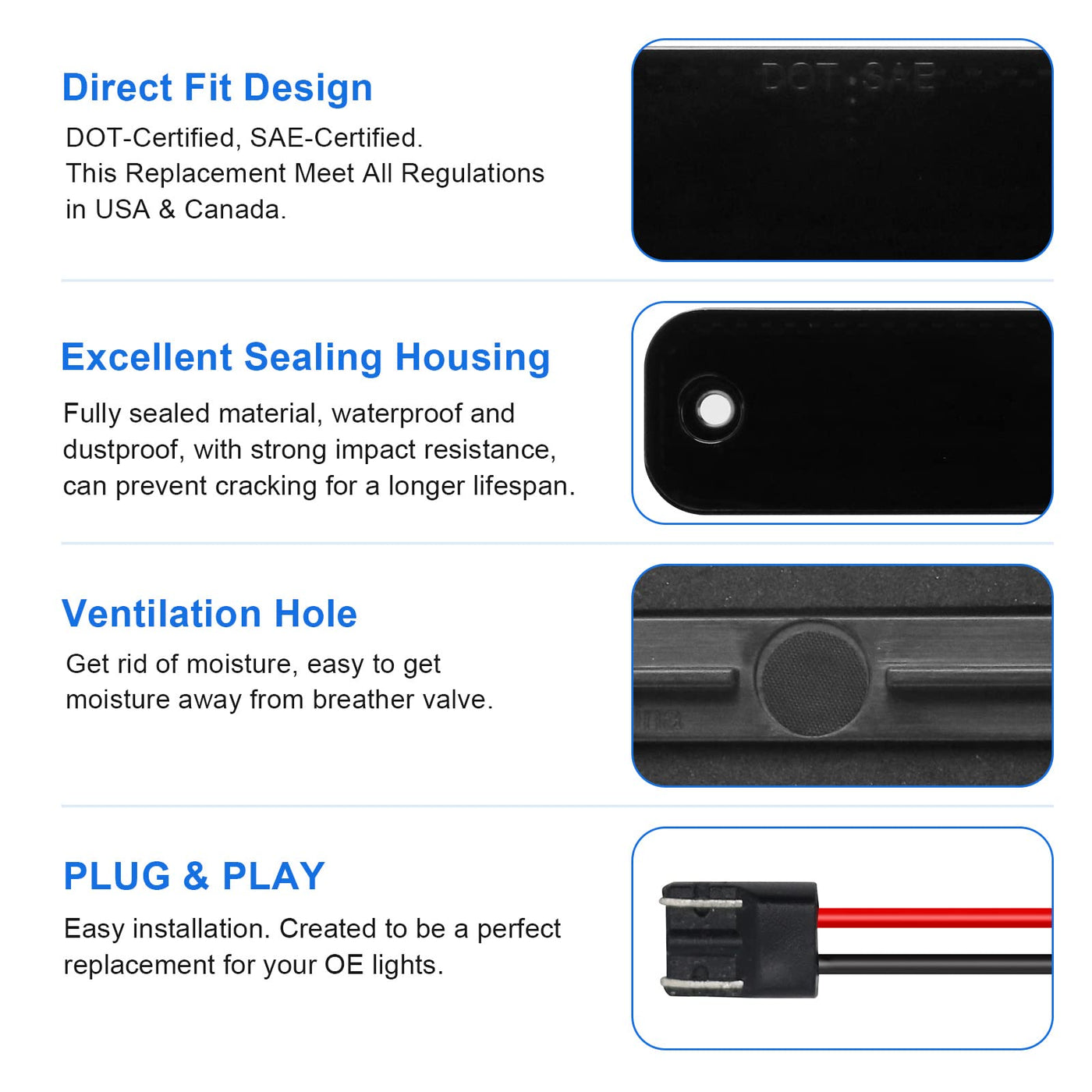 Vehicle Compatibility:Compatible with Bronco 1978-1979Compatible with F Series Truck 1973-1979F100 | F150 | F250 | F350 | F500Compatible with Econoline 1975-1991E100 | E150 | E250 | E350OEM Equivalent Part Number:D3TZ15A201A, D3TZ-15A201-A, D3TZ 15A201 A, FO2550101 D3TZ15A201B, D3TZ-15A201-B, D3TZ 15A201 B, FO2860101Long lasting LED lightsSuperior LED illumination for your trouble-free drivingEnhance safety and vehicle appearanceLow power consumption and energy savingCompletely Sealed, Integrated HousingMade of high-quality ABS housing & PC lensIP67 waterproof and ultra-durableThe perfect Aftermarket Replacement for OE lamps that have been dimmed by abrasion or discolored due to sunlightVoltage: 12VLED Color: Amber, RedLens Color: SmokeMaterial: PC+ABSInstallation: Plug & Play