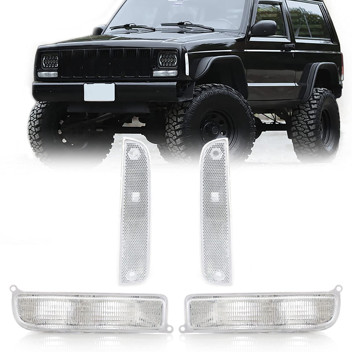 USR DEPO 97-01 XJ Signal Lights - COMBO Clear Bumper Turn Signal + Corner Side Marker Lamps Set (Left + Right) Compatible with 1