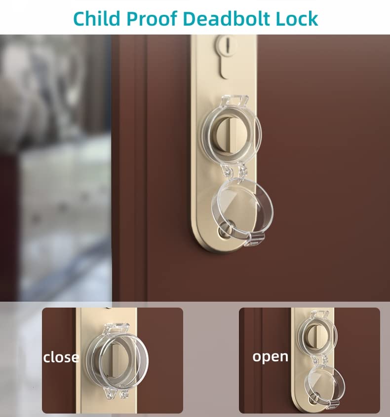 2 Pack Door Safety Deadbolt Lock For Kids,Child Proof Deadbolt Lock, Large Size Deadbolt Child Safety Lock Cover Fits Most Deadbolt (Transparent)