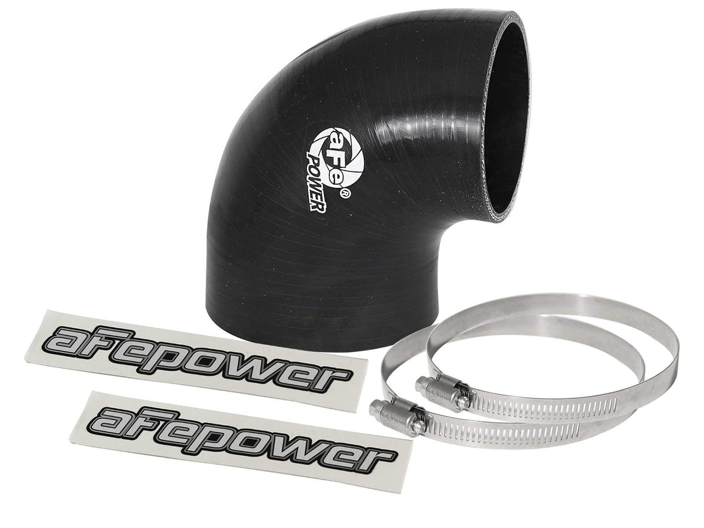 3-1/2 IN to 3 IN Reducer: This 11/16 IN long coupling features a 90 Degree angle and is designed to connect to tubes with a 3-1/2 IN and 3 IN diameter. It's commonly used on aFe POWER cold air intake systems, but can be used for a variety of projects. Silicone Construction: Its silicone construction features two layers of polyester reinforcement, making it extremely durable and less prone to deformation, tearing, and other damage, than average couplings. Stainless Steel Clamps: Two corrosion-resistant stainless-steel worm clamps (#048 & #056) are included, providing a secure seal for virtually any application. Fitment Note: Not for use on pressurized side of supercharged or turbocharged applications. Direct Replacement for P/N 05-01403.
