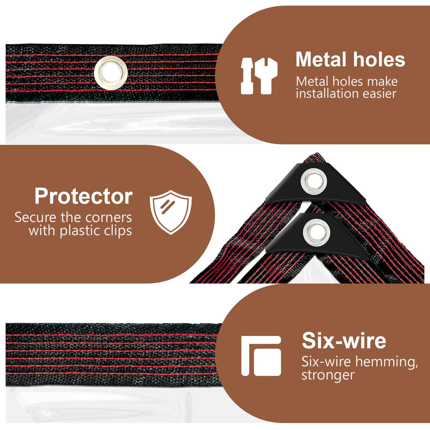 Q: How transparent is the Clear Tarp and how does it affect sunlight exposure?A: This Clear Tarp boasts 80% transparency, allowing ample sunlight to reach your plants while providing protection against winter's chill. It ensures that your garden receives the necessary light even during colder months, enabling you to enjoy beautiful views from your porch or balcony.