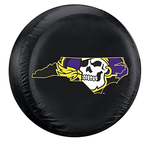 Q: What size tires does the East Carolina Pirates NCAA Spare Tire Cover fit?A: The East Carolina Pirates NCAA Spare Tire Cover is designed to fit standard size tires, ensuring a snug and secure fit on your vehicle.
