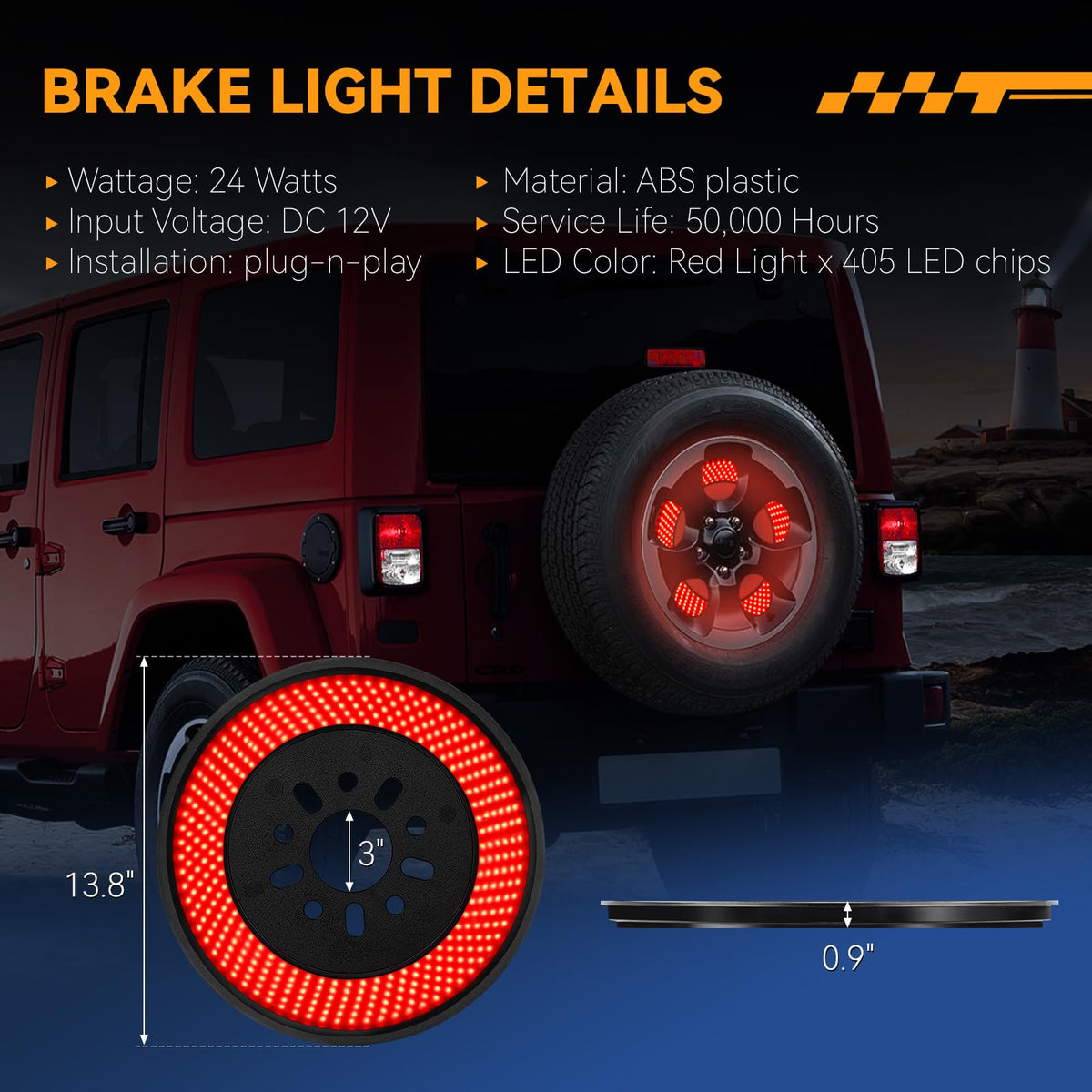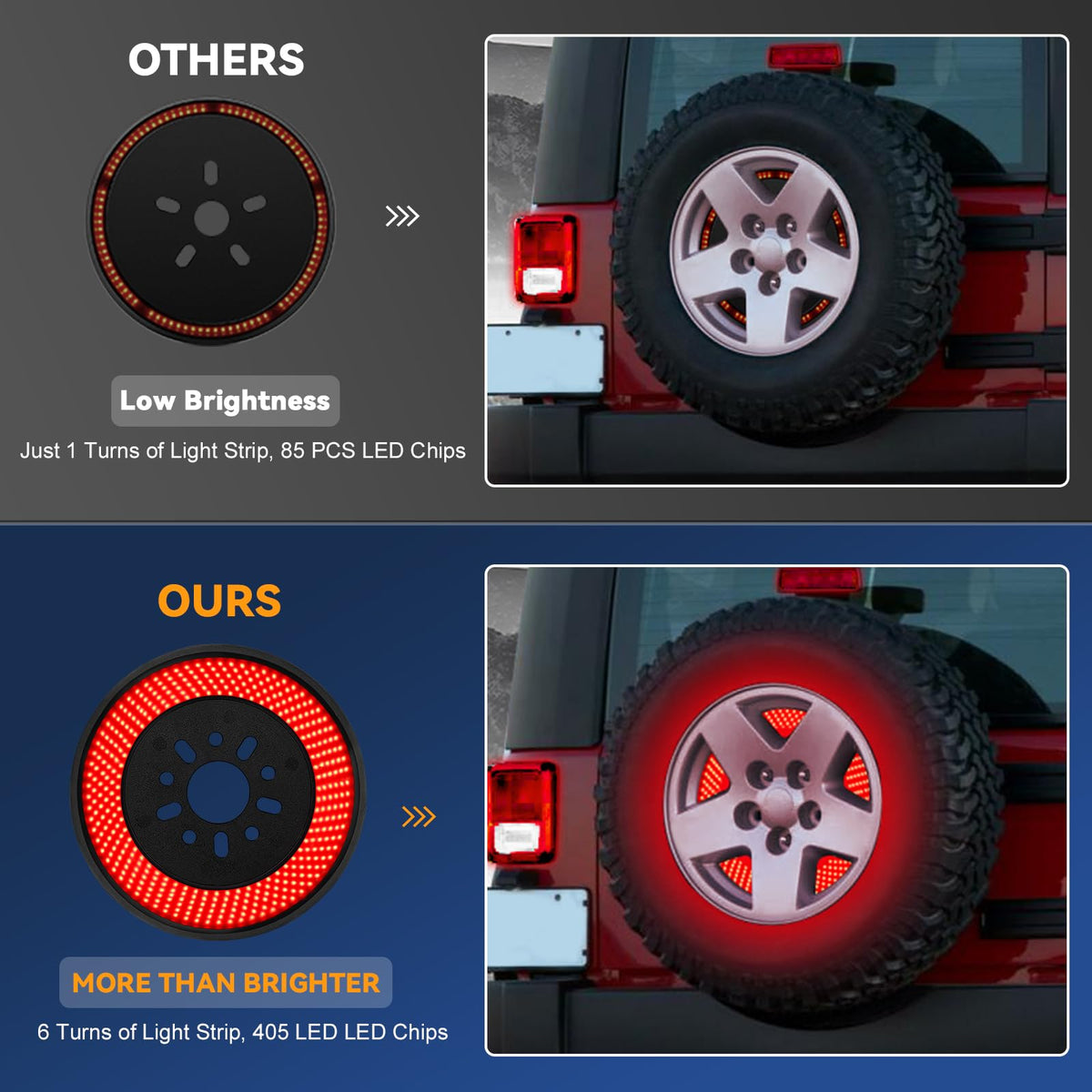 Karsam Spare Tire Brake Light For 2007-2018 Jeep Wrangler Jk Jku Yj Tj, 6 Ring 405Pcs Led Wheel Lights, Plug-N-Play 3Rd Third Brake Light,Red Rear Tail Brake Light For Jeep Wrangler Jk Jku Accessories