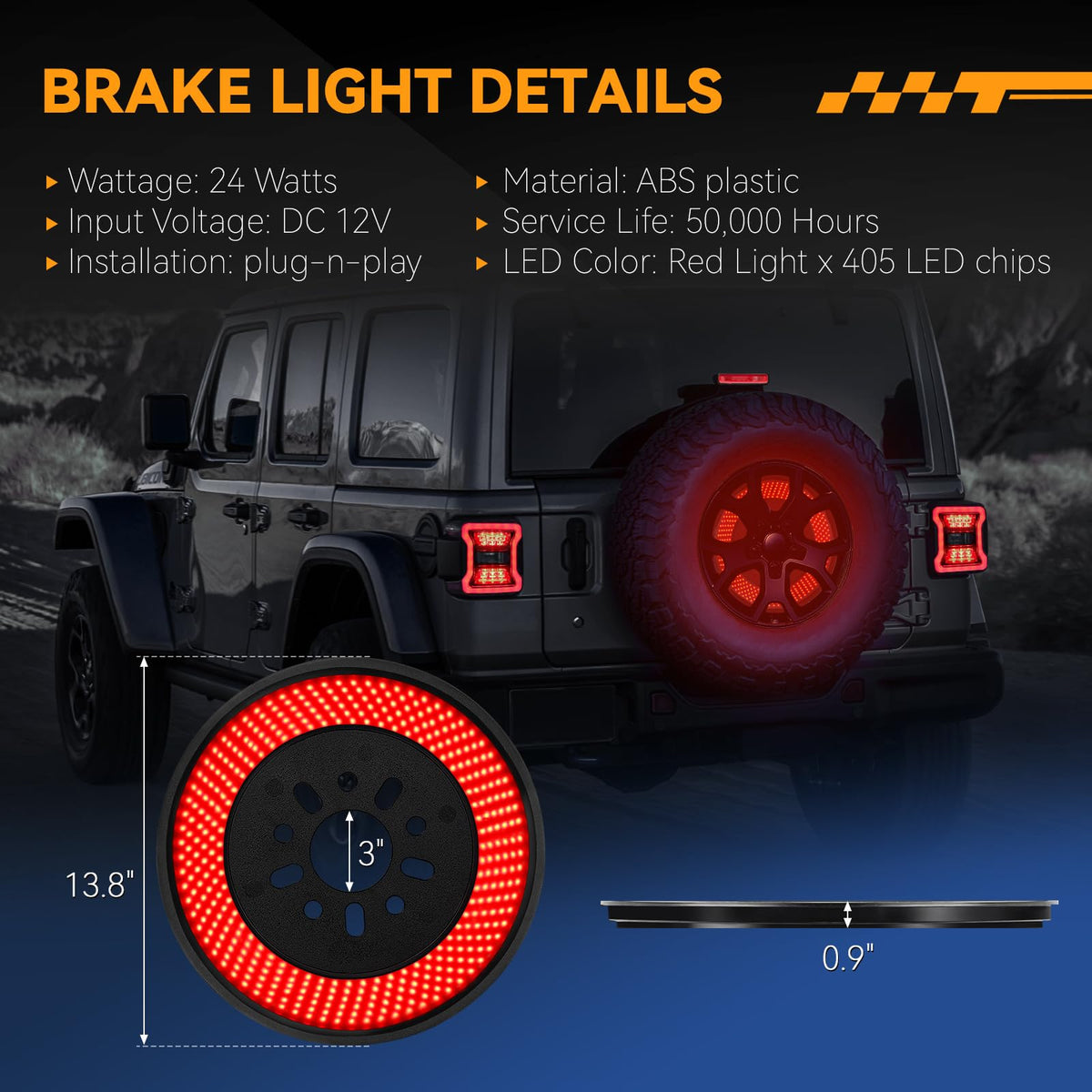 Karsam Spare Tire Brake Light For 2018-2025 Jeep Wrangler Jl Jlu, 405Pcs Led Super Bright 3Rd Third Brake Light, Plug-N-Play Whe