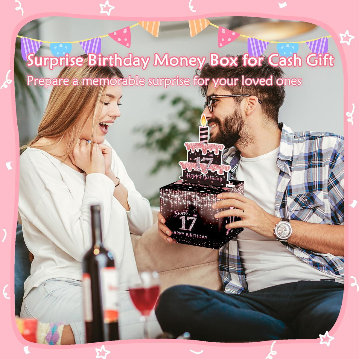 Meiidoshine Sweet 17Th Birthday Money Box For Cash Gift, Surprise Pull Out Money Gift Box With 100Pcs Transparent Bags - Fun Way