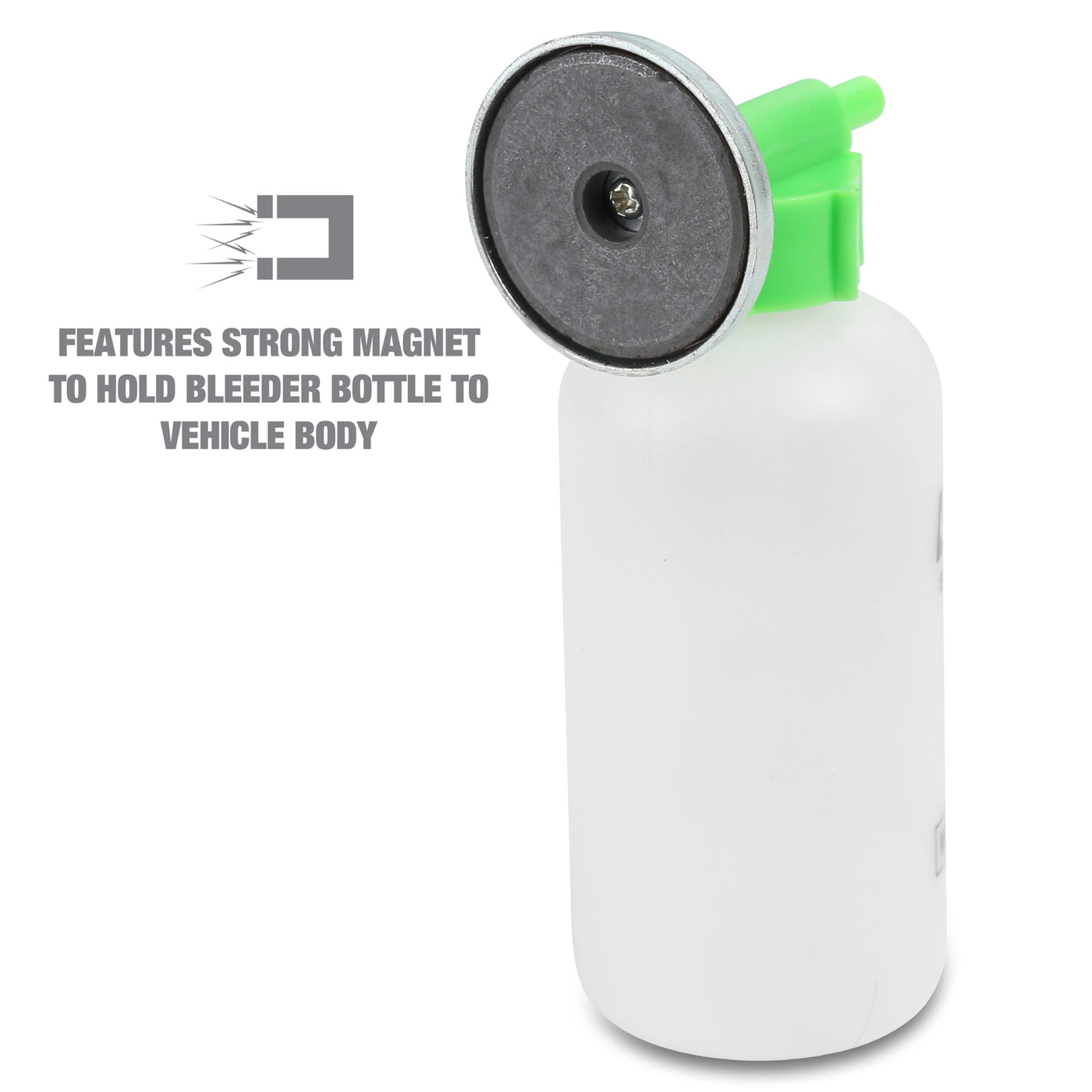 One Man Operation: Eliminate the need for a two-person method. Simply attach the bleeder's reservoir to the rotor or another metallic surface using the strong magnetic attachment, pump the brake, and watch as the brake lines drain effortlessly.