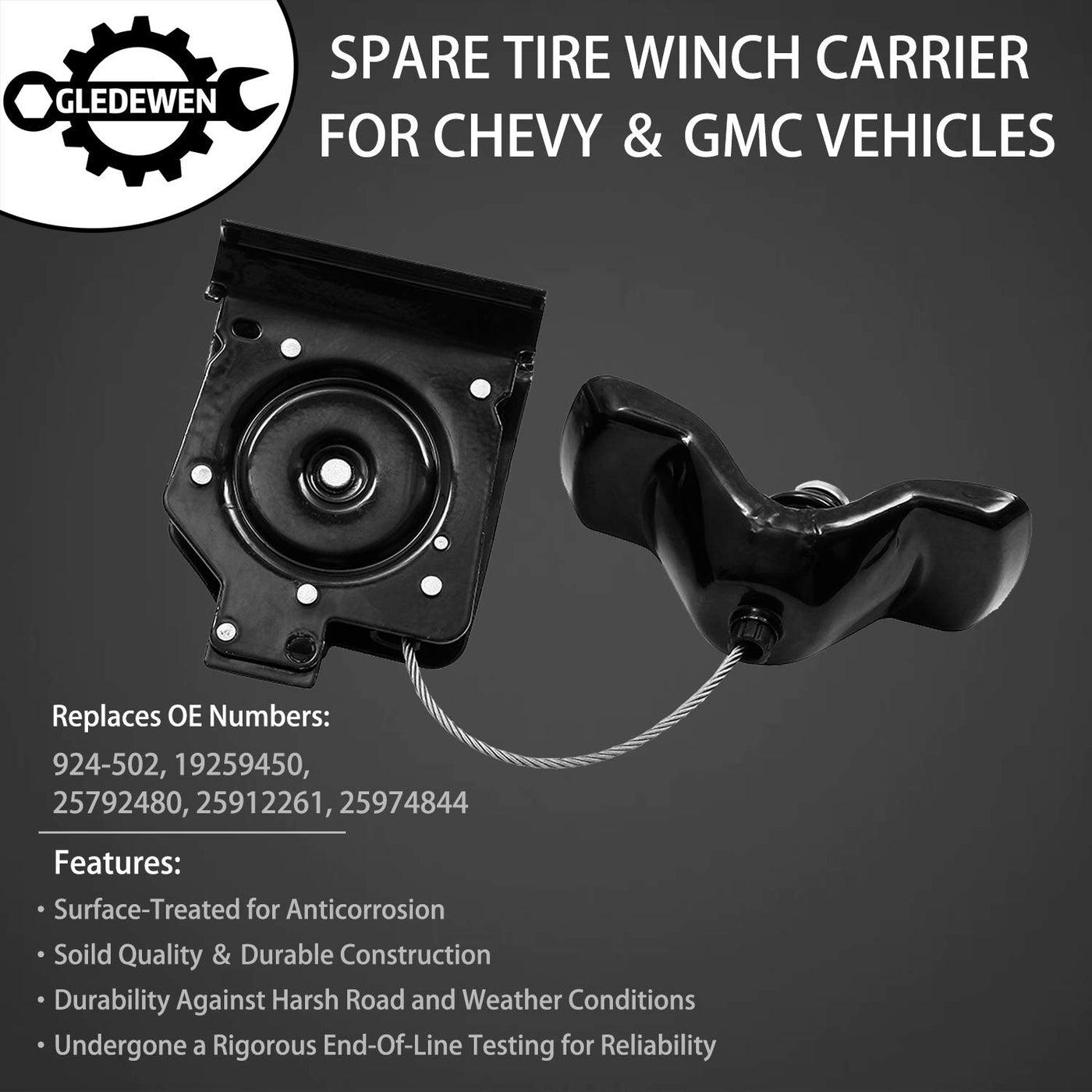 Q: What part numbers does this Spare Tire Hoist replace?A: This Spare Tire Hoist replaces several part numbers, including 924-502, 19259450, 25792480, 25912261, and 25974844.