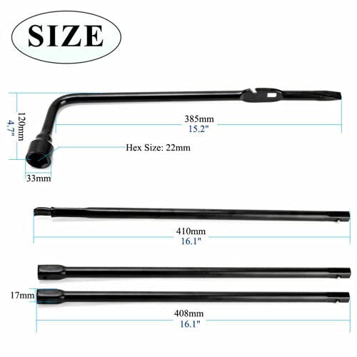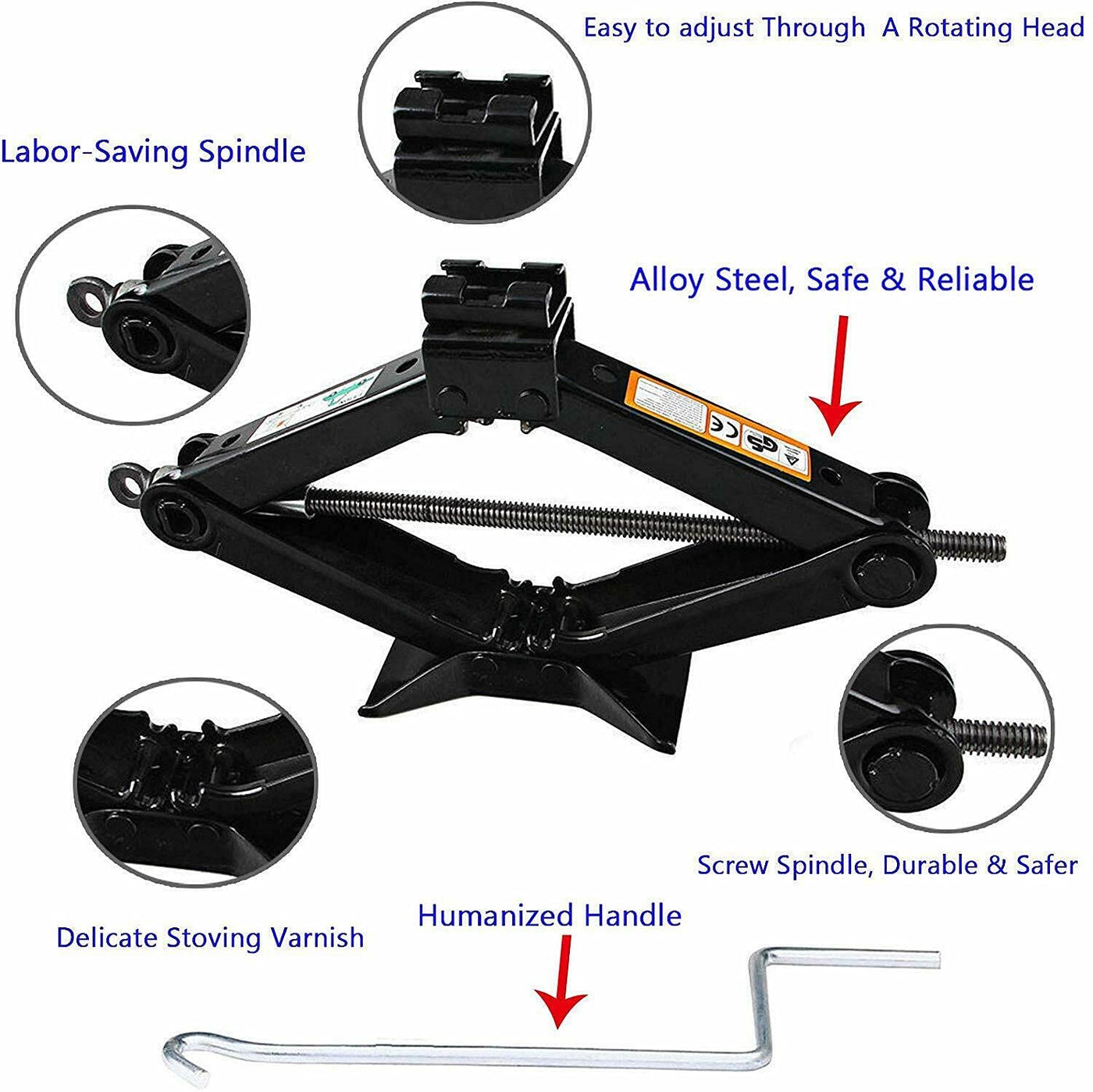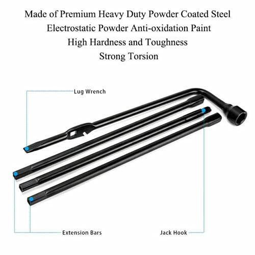 ?Features and Specifications:-Comes as a 4 piece set, for changing your spare tire-Material: Heavy Duty Powder Coated Steel with Convenient Carrying Case-This premium, heavy duty steel tire wrench set includes 4 pieces and a convenient carrying case.-This kit is a replacement for part number 22969377 and older part number 20782708.?Use this kit to:-Loosen or tighten lug nuts on the tires-Lower the spare tire from underneath the vehicle-Raise the jack which comes with your vehicle (note: jack included)?Scissor Jack:-The scissor jack, with tooth gears, can extend from 90mm(close position) to 360mm, more than enough to lift most vehicles.-Easy to operate using the chromed crank with speed handle.?Minimum height: about 90MMMaximum height: approximately 360MMLifting: 2TColor: BlackMaterial: SteelNet weight: 2.1KGItem Size: 35*8.5*8.5CMScope: Suitable for small and medium sized vehicles. Such as: cars, Buick, Santana, Vietnam and other vehicles.? Package Included:-1 x tire lug nut wrench-1 x piece that hooks into your jack-2 x extension pieces-1 x 2 Ton Scissor jack -1 x Handle