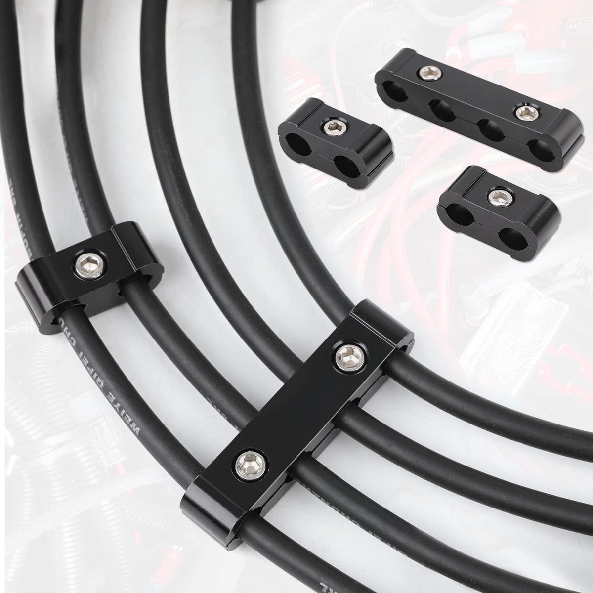 Q: How does this product help organize the engine compartment?A: The spark plug wire separator helps keep your spark plug wires organized and prevents them from crossing each other, which can cause loosening. This not only improves the overall aesthetics of your engine compartment but also enhances safety by minimizing the risk of fire in high-temperature environments.