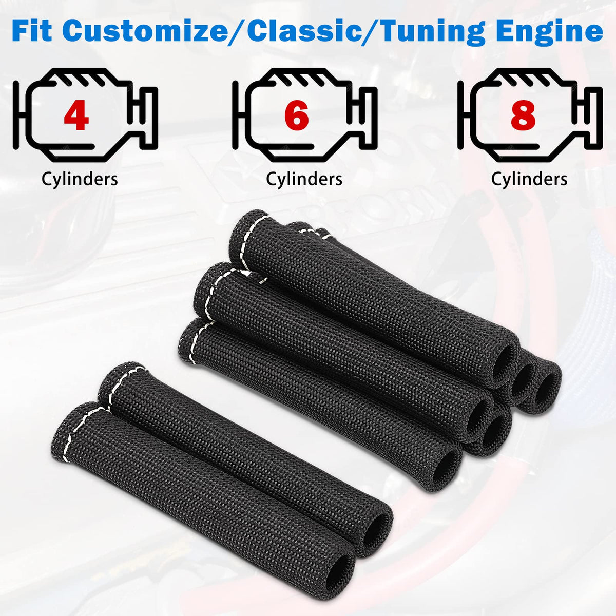 Q: How does the spark plug heat sleeve protect my wires?A: The spark plug heat sleeve is made from a double braided fiberglass material that provides excellent flame retardancy and heat insulation. This helps protect the spark plug wires from damage caused by high temperatures and exhaust manifolds.