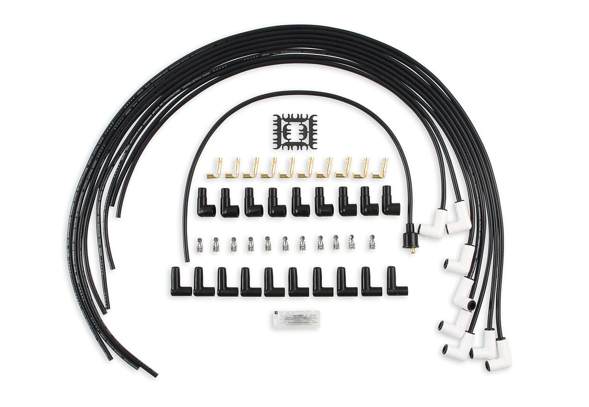 ACCEL's Extreme 9000 ceramic wire sets make burnt plug-wire boots a thing of the past. Not enough room in your engine bay? Not enough room to work around your headers? No problem – the ceramic boots on the spark plug end of these specially designed wire kits withstand temperatures up to 2;000 degrees Fahrenheit. The ceramic coating acts as a heat mirror; reflecting infrared energy and heat away from the plug boot; and it's engineered to resist flaking and peeling. 8mm Ferro-Spiral core double-silicone wires deliver maximum energy to the spark plugs with built-in RFI/EMI suppression for street-driven vehicles. Already cut to factory length; these ultra-high temperature wires are rated at 600 degrees Fahrenheit; have 500-Ohms/ft. resistance; feature stainless-steel terminals; and come with 90-degree ceramic boots.