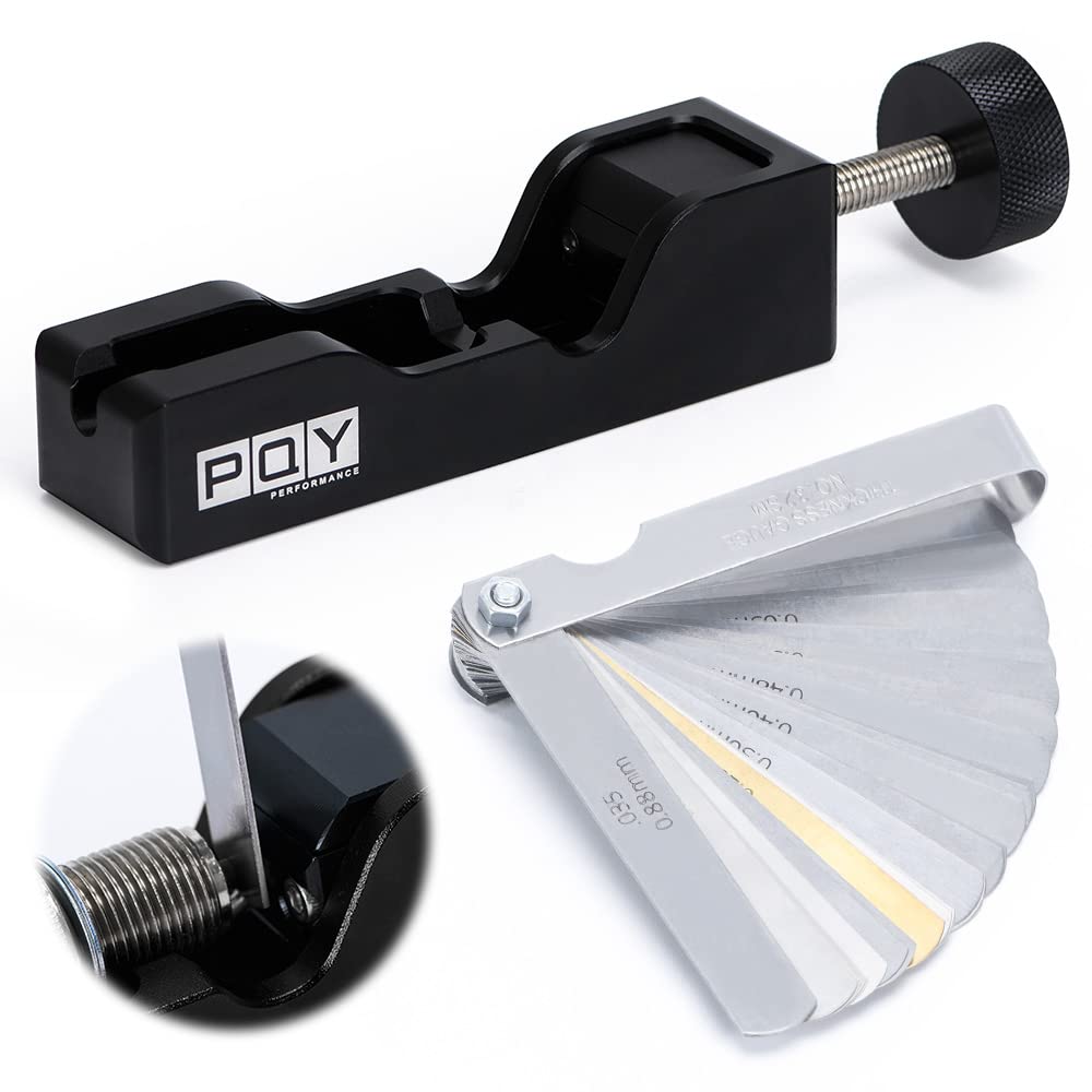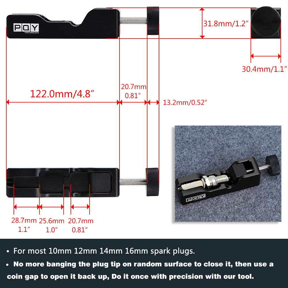 Q: How do I use the PQY Spark Plug Gap Tool for accurate gap measurement?A: To use the PQY Spark Plug Gap Tool, first place your spark plug securely into the tool. Then, select your desired size feeler gauge to measure the gap thickness. Turn the knob while the feeler gauge is in place until the side electrode compresses to the desired gap thickness.