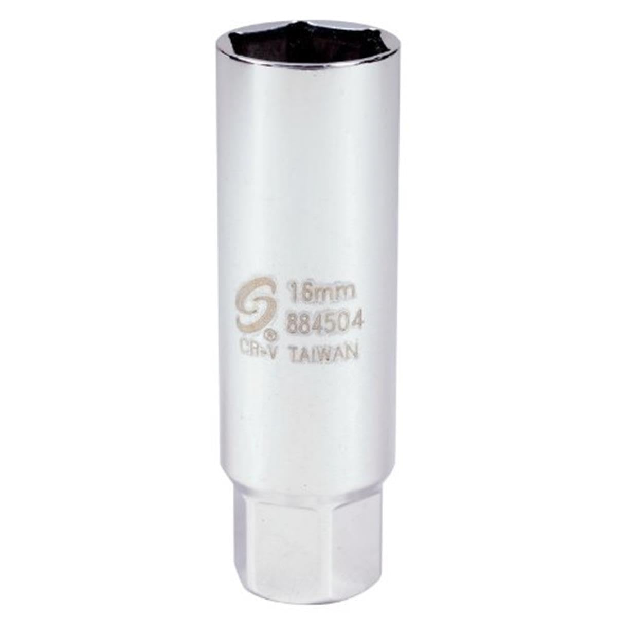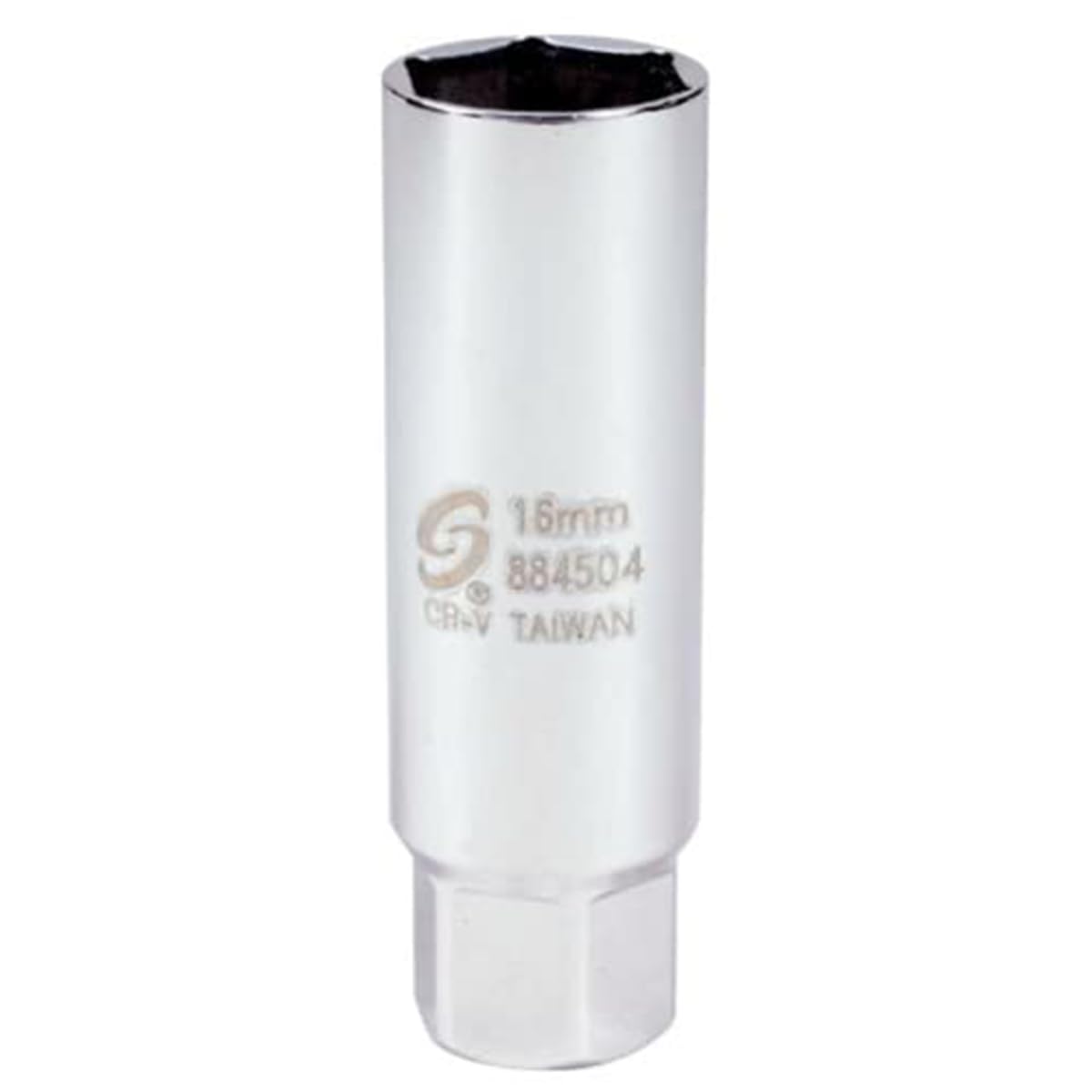 Q: What material is the Sunex 884504 spark plug socket made from?A: The Sunex 884504 spark plug socket is made from durable Chrome Molybdenum Steel (CR-MO), ensuring long-lasting performance.