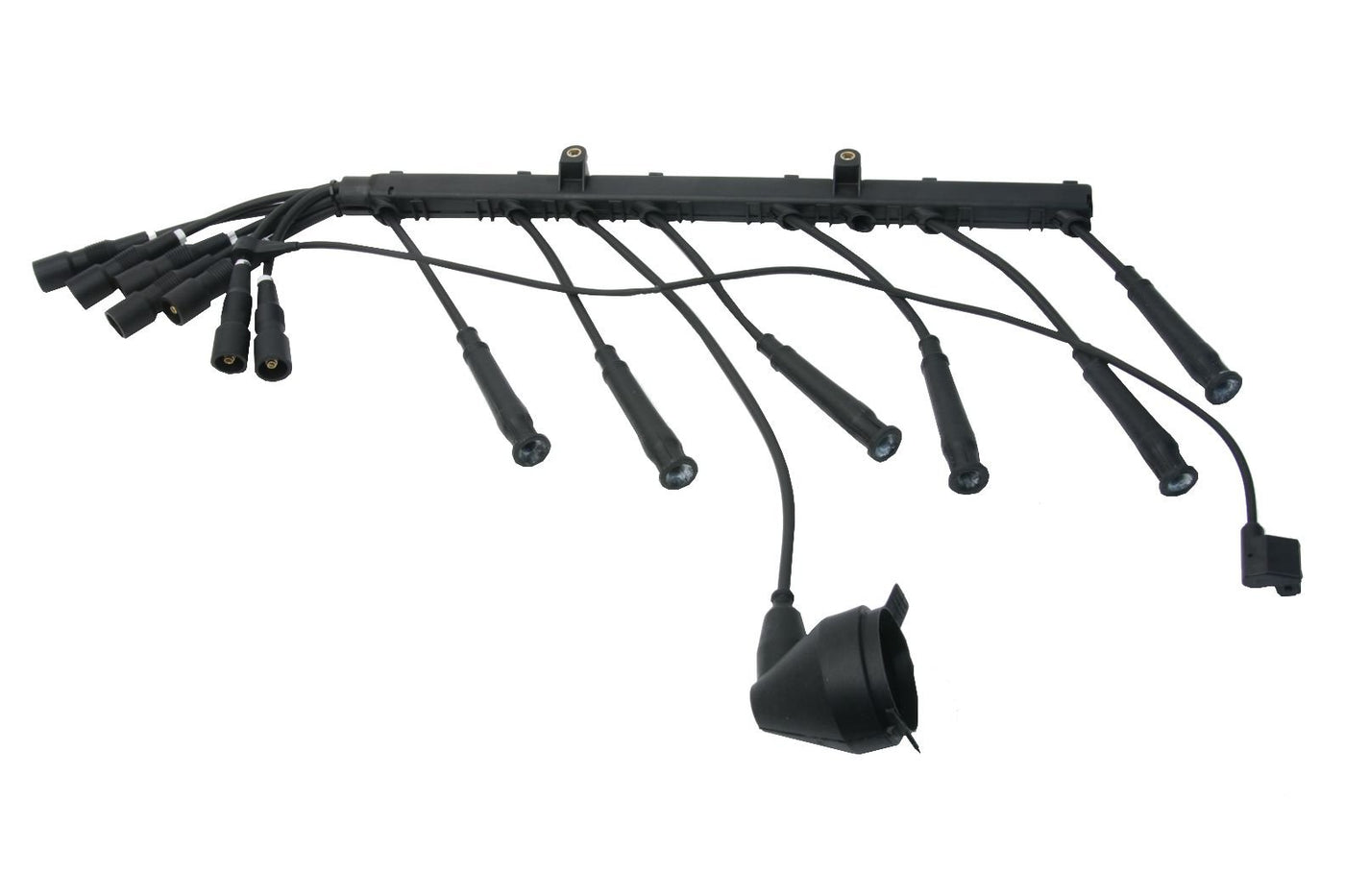 Q: What are the benefits of using the URO Parts Spark Plug Wire Set?A: The URO Parts Spark Plug Wire Set offers guaranteed fitment and replaces failed original spark plug wires, restoring smooth engine operation and enhancing power output. Its efficient wire and connector design maximizes spark intensity and minimizes current draw.