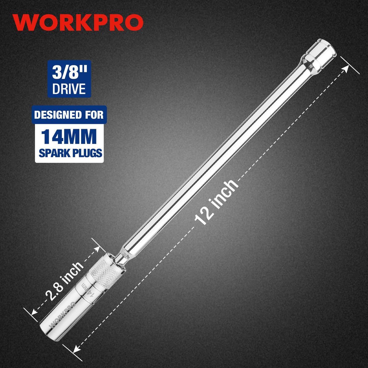 Workpro 14Mm Magnetic Swivel Spark Plug Socket, 3/8'' Drive X 12'' Total Length, Enhanced Magnetic Design With Thin Wall Socket,