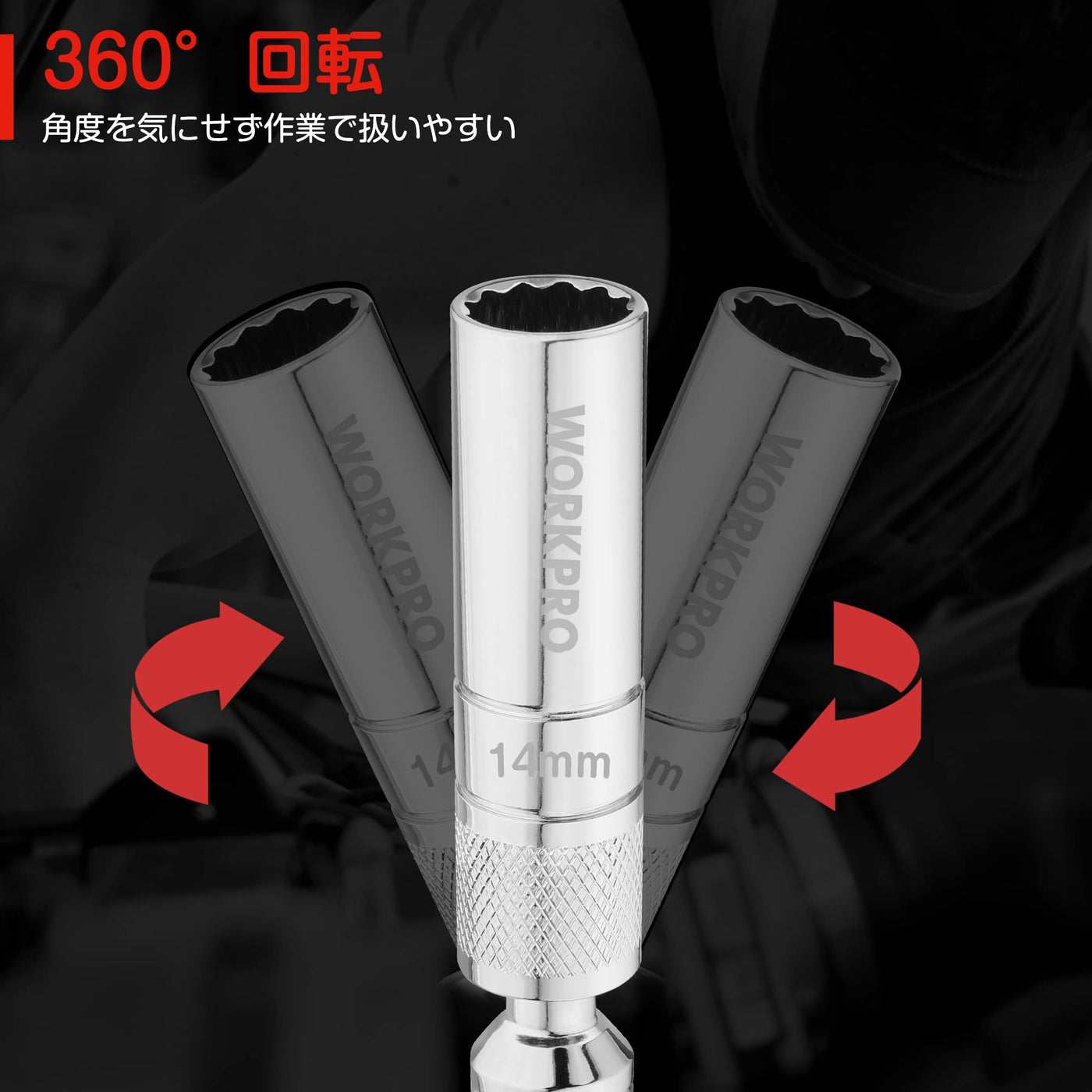 Workpro 14Mm Magnetic Swivel Spark Plug Socket, 3/8'' Drive X 4'' Total Length, Enhanced Magnetic Design With Thin Wall Socket,