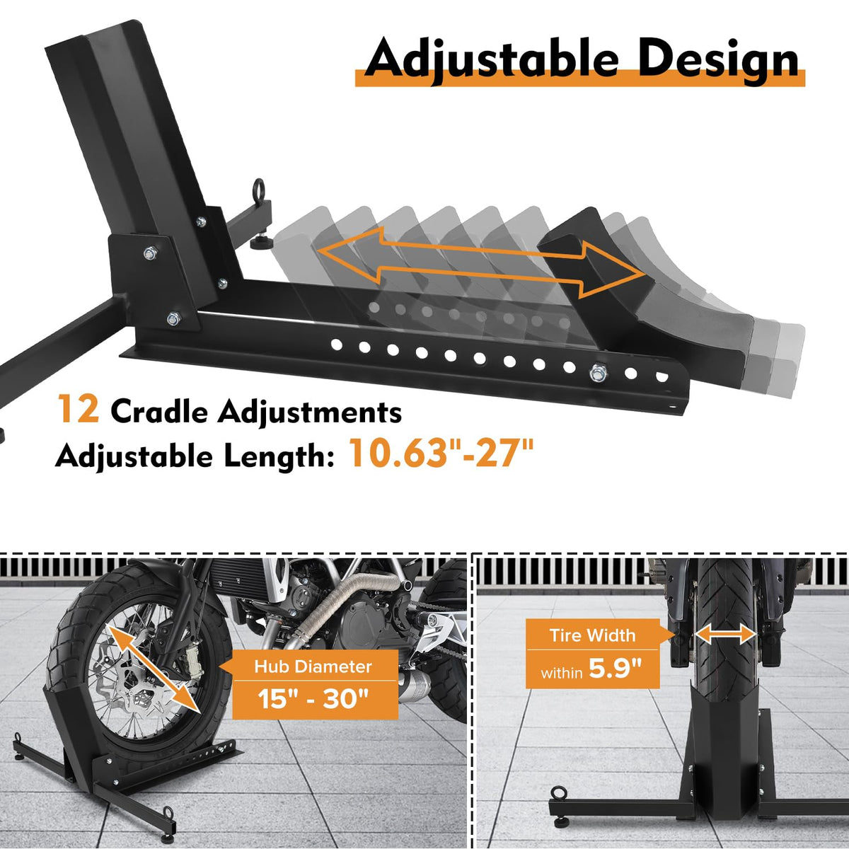 Donext Motorcycle Front Tire Chock, Adjustable Motorcycle Wheel Chock, 1500 lbs Heavy Duty Wheel Stand for 15''-30'' Wheels, Mot