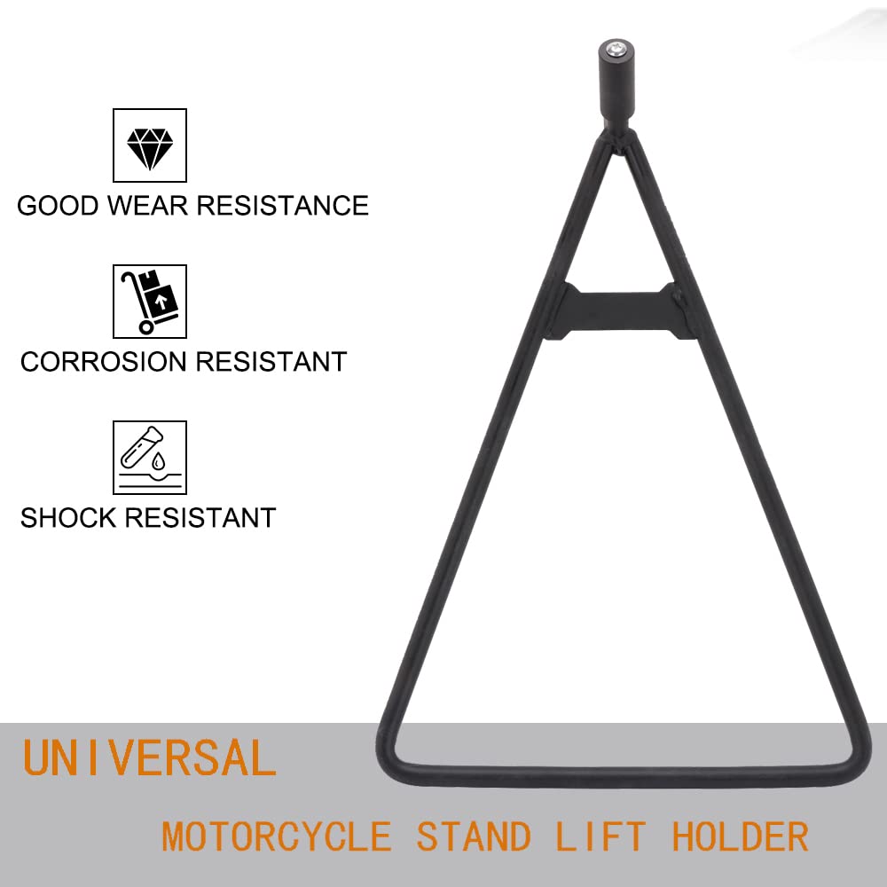 Features: 100% Brand New, Never Mounted, High Quality The triangle stand is universally designed to fit in the axle of just about any bike on the market today Our triangle stand is durable and will hold up your motorcycle or bike on sand, dirt or flat surface. High-quality cost effective replacement for OEM parts. Direct replacement to your original unit. Pic shown is of exact item you will receive Easy To Install Specification: Color: Black As Pictures Fitment: Fit all motorcycle with rear axles of inner diameters 18 mm,14.5 mm, and 11 mm.SuperMoto bikes with 17 '' wheels Package Includes: 1* Triangle Stand as picture Installation Instruction NOT Included