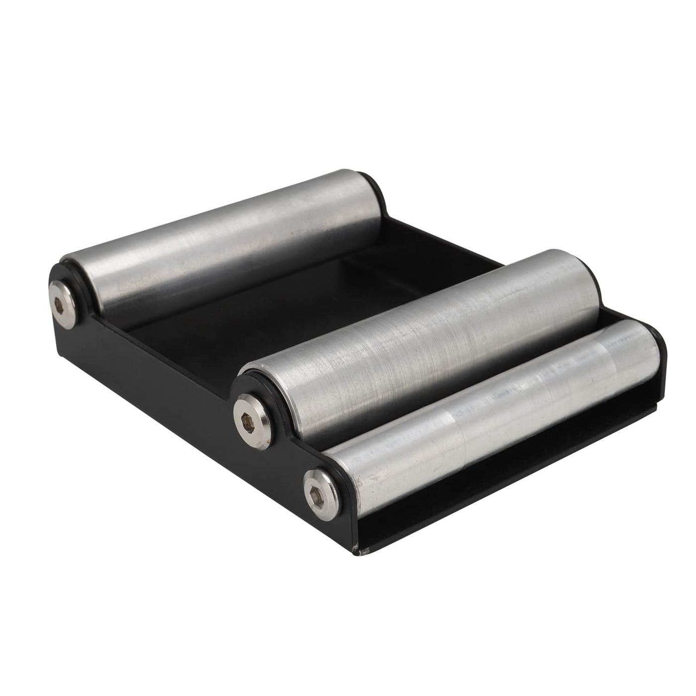 Q: How does the three guide wheel design improve tire cleaning?A: The three guide wheel design features a small guide wheel that helps position the motorcycle tires on the two larger guide wheels. This design facilitates smooth tire rolling, making it easier to clean tires and chains efficiently.